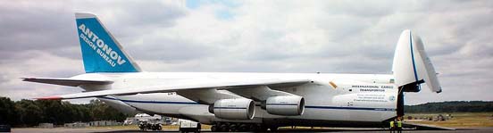 The Antonov An-124 Ruslan (Russian and Ukrainian: Антонов Ан-124 «Руслан») (NATO reporting name: Condor) was the largest airplane in production until the Antonov An-225 was built. During development it was known as the An-400 and An-40 in the West, and it flew for the first time in 1982. Civil certification was issued by the CIS Interstate Aviation Committee on 30 December 1992. Over forty are currently in service (26 civilian models with airlines and 10 firm orders as of August 2006) and 20 were in commercial use in 1998 in Russia, Ukraine, the United Arab Emirates and Libya. Design and development