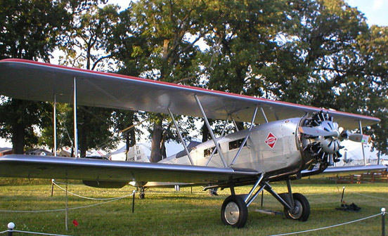 The Boeing Model 40 was a United States mail plane that became the first aircraft built by the Boeing company to carry passengers. It was of conventional biplane configuration with a combination of standard and warren-truss style interplane struts. Originally designed to compete for a US Mail contract in 1925, it was rejected in favour of the Douglas M-2. The design was revived in 1927 as part of Boeing's tender for newly-privatised airmail routes. Designated the Model 40A, this variant was powered by an air-cooled Pratt & Whitney Wasp radial engine, which offered a 200 lb weight saving over the water-cooled Liberty specified by the postal service in 1925. Although the primary purpose of the aircraft was to carry mail, two passengers could be accommodated in the small cabin, allowing Boeing to operate it on any of the routes that the firm might bid for. The original fuselage design was changed to one using welded steel tubing. Boeing successfully bid on the San Francisco-Chicago route, and Boeing Air Transport commenced operations on 1 July 1927 with 24 Model 40As. SurvivorsAs of February 17, 2008, Boeing 40C S/N 1043 became the only airworthy example in the world. It also holds the title of the oldest flying Boeing in the world. In 1928, the aircraft was substantially damaged in a crash and was totally rebuilt over a seven year period and and estimated 18,000 man hours by Pemberton and Sons Aviation in Spokane, Washington.. The Henry Ford Museum in Dearborn, Michigan, contains a 1927 Boeing 40B-2, number 285. The Museum of Science and Industry in Chicago, Illinois has a 1928 Boeing Model 40-B on display in its Transportation Gallery. (N288) The Museum of Flight in Seattle, Washington has a complete full-scale replica and two partially finished replica fuselages (showing what the original Boeing factory would have looked like circa 1928-29) on display. Variants