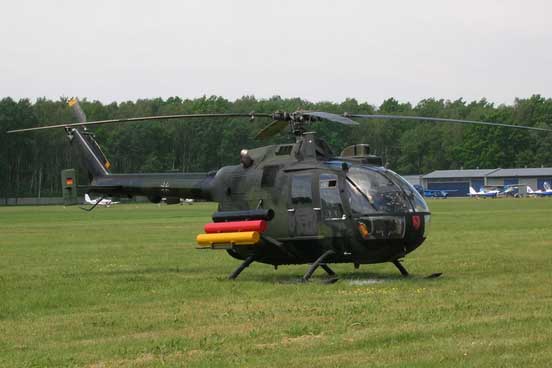 - Bo 105P/PAH-1 : With its army designation "PAH-1" and "PAH-1A1" for the upgraded version (PAH=Panzerabwehrhubschrauber; 'Tank-defence helicopter'), is an anti-tank helicopter armed with wire-guided HOT ATGMs (HOT2 for the upgraded A1 version). Most of them are being replaced with the new Eurocopter Tiger multirole attack helicopter, some will still stay in service till the end of their life span. The outphased PAH's are going to be disarmed and downgraded to the VBH version.