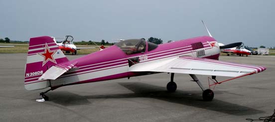 Wikipedia, The Sukhoi Su-26 is a single-seater aerobatics plane from the former Soviet Union, powered by a single radial reciprocating engine. The Su-26 has mid-mounted straight wings and fixed landing gear, the main gear mounted on a solid titanium arc. The Sukhoi Su-26 made its first flight in June 1984, the original four having a two-bladed prop. The production switched to the Su-26M, with refined tail surfaces and a 3-bladed Hoffman prop. Further refinements were made, and the model won both the men's and women's team prizes at the 1986 World Aerobatics Championships. The modified Su-26M3 with the new M9F 430-hp engine dominated the 2003 and 2005 Aerobatic World Championships as well as the 2004 European Championships. It was exported to Argentina in the 1990s. Specifications (Su-26)Data from