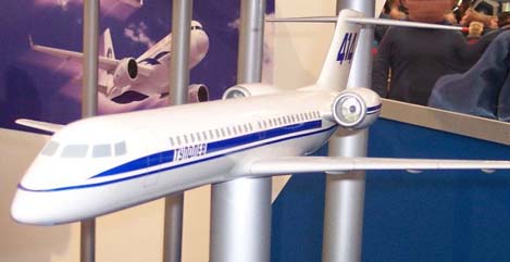 The Tupolev Tu-324 is a 30-50 seat regional passenger airliner. The jet will be twin powered by the General Electric CF34, Motor SICh D-436TP or the R-126-300 turbofan engines designed by the Moscow Soyuz corporation. The plane will be available as a corporate plane for 8-10 executives. The range for the 3 aircraft will be 2500 km, 5000 km and 7000 km. The cargo version can carry 3000 kg of cargo and having 5900 km range is also considered. The Tu-324 is designed to replace aging Yak-40, Tu-134, An-24 and An-26 on Russia's regional routes. ProductionThe executive version will be equipped with a satellite phone, FAX, and a PC outlet. The Tupolev Tu-324 will be able to operate from gravel and dirt airfields providing safety and comfort of the passengers. The Tupolev Tu-324 will be produced at the S.P.Gorbunov Aircraft Production Association in Kazan, Russia. The plane price will be beteween $19–23 Million USD. Variants
