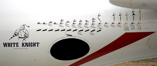 The Scaled Composites model number for White Knight is 318. White Knight is registered with the Federal Aviation Administration as N318SL. The White Knight carrier airplane was designed around the twin afterburning J-85 engines, which were selected for their availability and low cost. White Knight first flew on August 1, 2002. The flight was aborted shortly after takeoff due to a problem with the outboard wing spoilers. These trailing edge spoilers were designed to greatly increase the glide slope so that the White Knight vehicle could act as a flying simulator for training of SpaceShip One pilots. During the first flight, the mechanical over-center torque was insufficient to maintain the spoilers in the closed position. The spoilers deployed into the free stream and began a limit cycle forcing the pilot (Melville) to abort. The spoilers were subsequently disabled completely and the desire for a steep glide slope matching SpaceShip One was abandoned. White Knight next flew on August 5, 2002, and this time performed well. Development proceeded over the next few months. With White Knight developed and evaluated, on April 18, 2003 White Knight and SpaceShipOne were presented to the media. Subsequently, White Knight flew as part of the Tier One program that won the Ansari X Prize on 2004 October 4. Afterwards White Knight was used to carry and launch DARPA's experimental X-37 spaceplane for its approach and landing tests in 2005 and 2006. It was followed up by the White Knight 2 which have a similar but larger design. SpaceShipOne programFlights of White Knight are numbered, starting with flight 1 on August 1, 2002. Flights where SpaceShipOne is carried also get one or two appended letters. An appended C indicates that the flight was a captive carry, and L indicates that SpaceShipOne was launched. If the flight actually flown differs in category from the intended flight then two letters are appended, the first giving the intended mission and the second the mission actually performed.