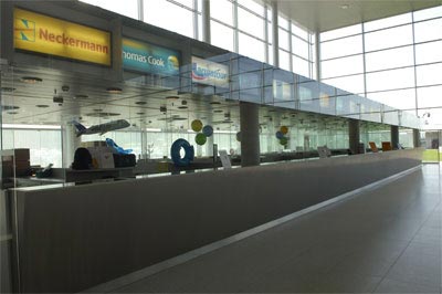 The airport is located next to the E42 (exit 3), close to an important highway junction.