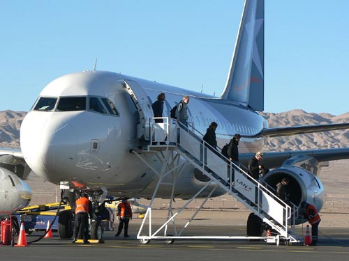 Passengers disembarking a flight from Santiago in 2008