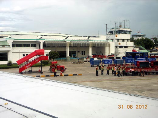 Agartala Airport (IATA: IXA, ICAO: VEAT) is located 12 km (6.5 nautical miles) northwest from the city of Agartala, the capital of the state of Tripura in India. It is administered by the Airports Authority of India (AAI)[2] providing world class amenities to passengers. The authority also ensures comfort and safety to the travelers. It is the second busiest airport in Northeast India after Guwahati. From 2010 to 2011 it was ranked 22nd busiest airport in India out of 50 major airports. Agartala Airport - Departure Terminal of Agartala Airport Agartala Airport - Rear View of the airport HistoryIn the year 1942, the 184th King of Tripura of Manikya Dynasty Maharaja Bir Bikram Kishore Manikya Bahadur planned to build an airport in Singerbhill, Tripura (Twipanga) at a time when there were hardly anyone in the region. The King is considered the father of modern architecture in Tripura who built the airport and also designed it during World War II. It had one primary runway 05/23 which is now used as a taxiway to Runway 18/36. During World War II, the airport was used by the United States Army Air Forces Tenth Air Force 4th Combat Cargo Group, which flew C-46 Commando transport aircraft over Burma. The airport was used as a supply point from which the unit air-dropped pallets of supplies and ammunition to the advancing Allied forces on the ground. The 4th CCG operated from the airport during December 1944 and January 1945, after which, the unit moved to Chittagong. Facilities at airportPassengers can get there luggage trolleys to carry there baggage. One can find a wrapping machine instrument. Baggage service is quite good and one can easily carry out once luggage in and out of the airport. Connectivity with the cityBus: Agartala Airport is approximately 11.5 km away from the main bus stand of the city. One can find a good number of private buses, one can also hire auto-rickshaws. Rail: Railways is limited to Agartala Railway Station located approximately 15.4 KM from the airport. One can fine a good number of auto rickshaws and buses which will reach the airport within an hour. Cargo AirlinesIndia post Cargo Freight flight is operated by Air India Cargo making the basic cargo delivery and recently Quickjet cargo also introduces its service from agartala. Agartala Airport - Air India Taxing in runway 18-36 Agartala Airport - Airport's new ATC Agartala Airport - Indigo at Agartala Airport Agartala Airport - SpiceJet at agartala airport Agartala Airport - Apron of agartala airport Airlines and destinations