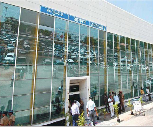 Coimbatore International Airport (IATA: CJB, ICAO: VOCB) is an international airport located in Peelamedu, serving Coimbatore. It was previously known as Peelamedu Aerodrome or Coimbatore Civil Aerodrome. It is about 16 km from the city centre. HistoryCoimbatore airport first started operations in the 1940s as a civil aerodrome, with Indian Airlines operating Fokker F27, Douglas DC-3 and Hawker Siddeley's Avro 748. In its early days, services were mainly to Chennai and Mumbai. Later services to Cochin and Bengaluru were added. In the early 1980s, the airport was closed down for runway expansion, to accommodate modern jets like the Boeing 737 and the Airbus A320. Temporarily, airlines were using the nearby Sulur Airbase. In 1987, after completion of the runway expansion and a new terminal, the airport resumed services. In 1995, Indian Airlines started international services to Sharjah, and in 2007 operations were started to the international destinations of Colombo and Singapore. Airport StructureCoimbatore Airport currently has one terminal, and one under construction There are two hangars, one for private carriers and one for the Coimbatore Flying Club. The parking bays in the airport can accommodate a maximum of six aircraft, and the airport also has a fire station. The airport has one runway that is 9,760 feet (2,970 m) in length - previously the runway was 8,500 ft (2,600 m) in length. Because of this runway expansion, the airport can accommodate aircraft such as the Boeing 747 and Airbus A330. An Instrument Landing System (ILS) is also being installed The further proposed expansion of the airport includes the construction of a parallel taxiway to the runway. This will minimise the runway occupancy time and turnaround of aircraft, as aircraft currently taxi on the runway. Two more parking bays will be added, raising the total number to eight. The terminal will also be modernised with sliding doors, aero-bridges, and modern systems for baggage-handling Airport Modernisation and ExpansionThe expanded and modernised airport terminal at Coimbatore is expected to be ready within two years from now. The entire tender process had been completed and contracts worth 78 crore were awarded for the modernisation and expansion of the project. According to the terms of references, the construction work should be completed within 24 months from the date of awarding the contract. The expansion project comprises scaling up the carpet area to 14,000 sq metres on a two-storeyed steel and glass space frame structure, from 6,000 sq mt. The project also includes installation of aero bridges, escalators and four elevators. The passenger handling capacity too would be doubled from the existing 350 at a time. The cargo handling capacity of 40 tonne at a time is also expected to double with additional infrastructure at an outlay of Indian Rupee 1.5 crore, work on which has already commenced. The apron extension project, at an investment of Indian Rupee 12.5 crore, is also in the offing and tender papers for the same are currently being processed. This apart, parallel taxi track would be laid at an outlay of Indian Rupee 32 crore, for which a detailed project report has already been submitted. Airport New Terminal Building OpenedCoimbatore: The newly-constructed Coimbatore Airport terminal building with state-of-the-art modern facilities will be opened on Monday noon. Airports Authority of India (AAI) Regional Executive Director D. Devaraj and Coimbatore Airport Director M.R. Vasudeva told The Hindu that the existing terminal building could handle 150 arrival passengers and 150 departure passengers. Both Mr. Devaraj and Mr. Vasudeva said a building parallel to the existing one was constructed to cater to the increasing number of passengers. The new building can at a time accommodate 350 passengers arriving at the airport and 350 departing from there. The new building will have all modern facilities - four lifts, four escalators and two aerobridges.A new parallel taxi track, laid at a cost of Indian Rupee 31 crore; four state-of-the-art fire tenders; extension of runway; new fire station and a workshop are some of the other facilities added to the airport.Originally there was no air-condition facility at the Coimbatore airport. However, the expanded area will be totally air-conditioned. Facilities such as escalators and lifts will be added to it. Work on the aerobridges is expected to be over in six months. With the expansion, the area of the building has been increased from 5,962 m to 14,673 m, having separate domestic and international arrival halls. The new arrival hall has been constructed with three conveyor belts with a loop length of 60 m each as against the two with 13.5 m length functioning in the old building. There is space for a VIP room, customs office, duty free shop, banks etc. Presently, domestic and international passengers are handled through common security hold. Soon, the existing departure lounge of the terminal building will be enlarged and modified. The AAI with the help of the state highways department has developed a four-lane approach road and two additional service roads. Integrated terminal buildingStating that AAI has requisitioned 613 acres to construct an integrated terminal building to handle 1,200 passengers, at a cost of Indian Rupee 395 crore, AAI said the State government has agreed to hand over the land soon. Terminals, airlines and destinations