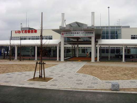 Hanamaki Airport (花巻空港, Hanamaki Kūkō) or Iwate-Hanamaki Airport (IATA: HNA, ICAO: RJSI) is an airport located 6 km (3.7 mi) north northeast of Hanamaki, a city in the Iwate Prefecture of Japan. On 4th April, 2009, a new terminal building was opened on the opposite side of the runway, replacing the now-defunct old terminal building that is situated next to Route 4. Nitanai station now replaces Hanamaki Airport station as the nearest train station to the terminal building. Airlines and destinations