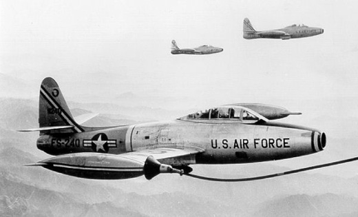 F-84G-25-RE Thunderjet AF Serial No. 52-3249 of the 49th Fighter-Bomber Wing being refuled over Korea, 1953 |