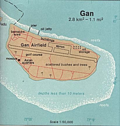 Gan International Airport (IATA: GAN, ICAO: VRMG) is located on the island of Gan in Addu Atoll (also known as Seenu Atoll) in the Maldives.