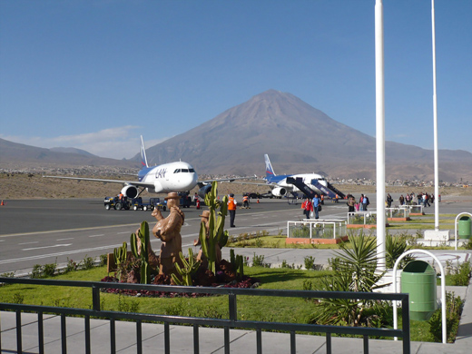Rodríguez Ballón International Airport (IATA: AQP, ICAO: SPQU), known as Aeropuerto Internacional Rodríguez Ballón in Spanish, is an airport serving Peru's second largest city, Arequipa. This airport and Cusco's Alejandro Velasco Astete International Airport are the main air hubs in southern Peru. This air terminal was used by 593,038 passengers in 2009, as reported by CORPAC, Peru's national airport corporation, who currently manages this and other non-privatized airports around the country. Its runway is fully paved. In the past it has had international flights to destinations such as La Paz in Bolivia. It is the main gateway for tourists visiting the city of Arequipa, spectacular nearby ruins, and the Colca Canyon, the world's second deepest canyon (only behind Cotahuasi Canyon, also located in Arequipa.) Airlines and destinations