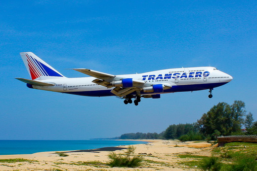 Transaero Airlines Boeing 747-300 landing at Phuket International Airport