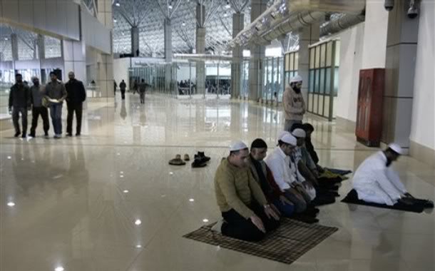 Muslims praying at Srinagar Airport. |