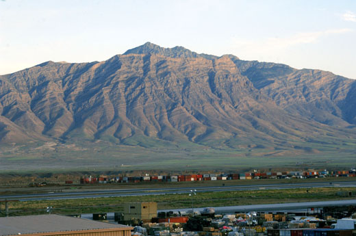 Bagram Airfield, also refered to as Bagram Air Base, is a militarized airport and housing complex that is located next to the ancient city of Bagram, 11 kilometres (6.8 mi) southeast of Charikar in Parwan province of Afghanistan. The base is run by an Army Division headed by a two-star general. Thus the base exists to serve an Army Mission. A large part of the base, however, is "owned" by the Air Force (455th Air Expeditionary Wing). The area under Air Force control (about half of the overall base) includes the flight line, the ramp, and most of the area involving air mission resources. The Air Force mission exists to support the Army in accomplishing the overall Army mission. The base is currently occupied and maintained by the Combined Joint Task Force 101st Airborne Division (CJTF-101), having taken over from the 82nd Infantry Division in the first half of 2010. The airfield is occupied and maintained by 3rd Combat Aviation Brigade (Task Force Falcon) and 2/3 GSAB (Task Force Knighthawk) of the United States Army, with the 455th Air Expeditionary Wing of the United States Air Force and other U.S. Army, U.S. Navy, U.S. Marine Corps, U.S. Coast Guard, and their NATO/ISAF (International Security Assistance Force) coalition partner units having sizable tenant populations. Bagram Airfield has three large hangars, a control tower, and numerous support buildings. There are more than 32 acres (130,000 m²) of ramp space and five aircraft dispersal areas, with a total of over 110 revetments. Many support buildings and base housing built by the Soviet Armed Forces during their occupation were destroyed by years of fighting between various warring Afghan factions after the Soviets left. New barracks and office buildings are slowly being constructed at the present time. There is also Bagram Theater Internment Facility, a detention centre which has been criticized in the past for its abusive treatment of prisoners. In May 2010, the International Committee of the Red Cross revealed that since August 2009 it was informed by US authorities about inmates of a second prison where detainees are held in isolation and without access to the International Red Cross that is usually guaranteed to all prisoners. The ICAO ID is OAIX and it is specifically at 34.944N, 69.259E at 1,492 metres (4,895 ft) above sea level. The base had a single 3,003 metres (9,852 ft) runway built in 1976. A second runway, 3,500 metres (11,500 ft) long, was built and completed by the US military in late 2006, at a cost of USD$68 million. This new runway is 497 metres (1,631 ft) longer than the previous one and 280 millimetres (11 in) thicker, giving it the ability to land larger aircraft, such as the C-5 Galaxy, C-17 Globemaster III or the Boeing 747 (which is used by Kalitta Air for regular cargo flights). HistoryThe original runway, 10,000 feet (3,000 m) long, was built in 1976. Soviet invasion eraBagram Airfield played a key role during the Soviet war in Afghanistan from 1979 to 1989, serving as a base of operations for troops and supplies. Bagram was also the initial staging point for the invading Soviet forces at the beginning of the conflict, with elements of two Soviet Airborne Troops' divisions being deployed there. Aircraft based at Bagram, including the 368th Assault Aviation Regiment flying Su-25s, provided close air support for Soviet and Afghan troops in the field. The 368th Assault Aviation Regiment was stationed at Bagram from October 1986 to November 1987. In 1987 a memorial was erected in honor of the five Soviet Air Force Su-25 "Frogfoot" pilots who had been killed during the war, including Captain Burak and Senior Lieutenants Aleshin, Zemlyakov, Paltusov and Hero of the Soviet Union Pavlyukov. The dilapidated memorial was discovered by U.S. Air Force Sergeants David Keeley and Raymond Ross, and Army Sergeant Tom Clark in 2006. An attempt was made to preserve it as a historical site, refurbish and possibly relocate the memorial to the Russian embassy in Kabul, but it was ultimately destroyed by base personnel in 2008. Some of the Soviet land forces based at Bagram included the 108th Motor Rifle Division and the 345th Independent Guards Airborne Regiment of the 105th Airborne Division. Civil War eraFollowing the withdrawal of the Soviet forces and the rise of the Mujahideen, Afghanistan plunged into civil war. Control of the base was contested from 1999 onward between the Northern Alliance and Taliban, often with each controlling territory on opposing ends of the base. Taliban forces were consistently within artillery and mortar range of the field, denying full possession of the strategic facility to the Northern Alliance. Press reports indicated that at times a Northern Alliance general was using the bombed-out control tower as an observation post and as a location to brief journalists, with his headquarters nearby. Reports also indicated that Northern Alliance rocket attacks on Kabul had been staged from Bagram, possibly with Russian-made FROG-7 Rockets. US and allied forces invasion eraDuring the US-led invasion of Afghanistan the base was secured by a team from the British special force Special Boat Service. By early December 2001 troops from the 10th Mountain Division shared the base with Special Operations Command officers from MacDill Air Force Base in Florida and soldiers of the 82nd Airborne Division from Fort Bragg. The British force consisted of Bravo and Charlie Companies from 40 Commando Royal Marines. As of mid-December 2001 more than 300 US troops, mainly with the 10th Mountain Division, were providing force protection at Bagram. The troops patrolled the base perimeter, guarded the front gate, and cleared the runway of explosive ordnance. As of early January 2002 the number of 10th Mountain Division troops had grown to about 400 soldiers. As of late January 2002, there were somewhat over 4,000 US troops in Afghanistan, of which about 3,000 were at Kandahar airport, and about 500 were stationed at Bagr