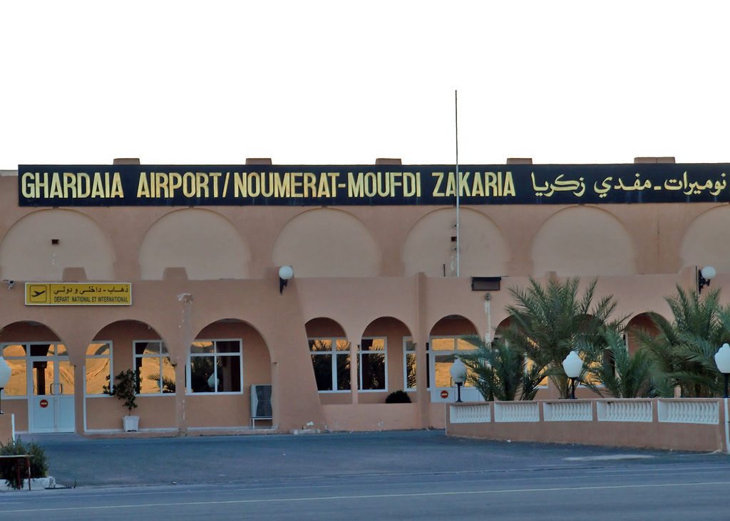 Noumérat - Moufdi Zakaria Airport (French: Aéroport de Ghardaïa / Noumérat - Moufdi Zakaria) (IATA: GHA, ICAO: DAUG), also known as Noumerate Airport, is a public airport serving Ghardaïa, the capital of the Ghardaïa Province in Algeria. It is located 8.6 nautical miles (15.9 km) southeast of the city. The airport is named for Moufdi Zakaria, the author of Kassaman, the Algerian national anthem. Terminal project