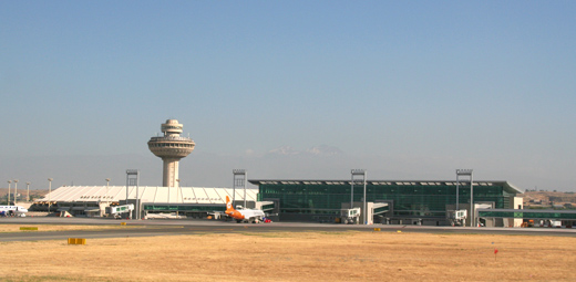 Zvartnots International Airport (Armenian: Զվարթնոց Միջազգային Օդանավակայան Zvart'nots' Mijazgayin Odanavakayan) (IATA: EVN, ICAO: UDYZ) is located near Zvartnots, 10 km (6.2 mi) west of Yerevan, the capital city of Armenia. The airport was built in 1961. It is now the busiest airport in Armenia and the Caucasus. The draftsmen of the airport included architects M. Khachikyan, A. Tarkhanyan, J. Sheqhlyan, L. Cherkezyan and designers H. Tigranyan, A. Meschyan, and constructor M. Baghdasaryan. The airport was renovated in the 1980s with the development of a new terminal area, in order to meet domestic traffic demands within the Soviet Union. When Armenia declared its independence from the Soviet Union in the 1990s, the considerable growth of cargo shipments resulted in the construction of a new cargo terminal in 1998, with modern technical equipment that can handle about 100,000 tons of cargo annually. In 2001, a 30-year concession agreement for the management of operations at the airport was signed with Armenia International Airports CJSC, owned by Argentine American company Corporation America, which is in turn owned by Armenian Argentine businessman Eduardo Eurnekian. As part of that agreement, Armenia International Airports CJSC committed itself to renovate and expand the airport in order for it to become a vital link for tourism and commerce between Asia and Europe, as well as to modernize its facilities and services. As part of those commitments, renovation and expansion work began in 2004, culminating in the opening of a new international terminal on June 1, 2007, after 40 months of work. Yet another terminal is going to be built, housing passenger check-in counters and customs control. It is planned to open in November 2011. In 2006, Zvartnots airport handled a total of 1,125,698 passengers, representing an increase of 1.3% over the previous year. In 2007, that number grew to 1,387,002 passengers, a 23.2% increase over the previous year. In 2008 the total number of passengers grew to 1.48 million. Currently, the airport's manager is Juan Pablo Guechigian. Recent and ongoing expansionIn 2004, the construction of a new international terminal began, at a cost of USD$100 million. It covers an area of 19,200 m (207,000 sq ft) and can handle 2 million passengers a year. The building of this terminal is part of the 30-year concession agreement signed by the Armenian Government and Armenia International Airports. On September 14, 2006 the newly built arrivals hall was opened. The new international terminal with its departures section was opened on June 1, 2007. An additional investment of USD$100 million will be carried out until 2010. Improvements at Zvartnots will involve a total investment of €164 million for the next 30 years. Armenia International Airports CJSC has already allocated over €70 million to the first phase, which included a 19,200 m (207,000 sq ft) extension of the premises and a refurbishment of around 45,000 m (480,000 sq ft). Now that the first phase is complete, the airport boasts a 54,000 m (580,000 sq ft) runway and 45,000 m (480,000 sq ft) of building, of which the new terminal occupies 25,000 m (270,000 sq ft) area. In order to adapt to the forthcoming increase in visitors, new parking has been created, with capacity for 1,000 vehicles. Many international airlines now operate from Zvartnots, connecting Yerevan to the world's most important cities, including Amsterdam, Athens, Barcelona, Berlin, Dubai, İstanbul, London, Moscow, Paris, Rome, Tehran, Vienna, Warsaw & Zurich. Altogether around 60 routes will be scheduled to fly from Zvartnots. In addition, the company has focused on improving visitor's comfort within the terminal. The arrival hall capacity has been doubled to reach a volume of over 1,000 passengers per hour, and passenger management will be streamlined thanks to a substantial expansion of the customs. Finally, the airport's waiting areas and passenger service areas have been extensively renovated, with availability of Wi-Fi, together with the enhancement of the duty-free shops and restaurants. Navigation systems installed at the airport provide the meteorological minimas of 30x350m for landing, which corresponds to the ICAO 2nd class. In the spring of 2008, the construction of a new passenger terminal began, in order to supplement the existing concourse. The completion of the project is expected in 2011. The new passenger terminal, occupying 52,000 m (560,000 sq ft), will double the number of passenger check-in counters and security control points. A new underground parking lot will be built, with a parking area for more than 800 cars. When this terminal is accomplished, “Zvartnots” International Airport will become a leader among airports in the South Caucasus. It will be able to serve 3.2 million passengers annually. The entire project will cost $173 million, part of which is on loan from the Asian Development Bank (ADB). SecurityIn order to comply with the international air regulations, Armenia International Airports has made a great effort to improve security at Zvartnots. Amongst other measures, 150 surveillance cameras have been installed at the airport, both inside the buildings and in open spaces. The modernization effort has been significant, including the implementation of an innovative flight information display system (FIDS) as well as a new automated and biometric-identification system for baggage check-in and passenger control. All buildings are now also equipped with free Wi-Fi Internet connection. Airlines and destinationsNote: † denotes charter airlines and their destinations