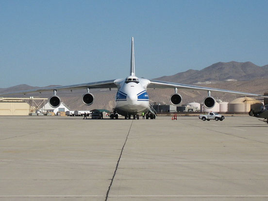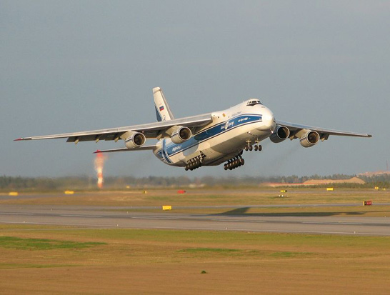 The Antonov An-124 Ruslan (Russian and Ukrainian: Антонов Ан-124 «Руслан») (NATO reporting name: Condor) was the largest airplane in production until the Antonov An-225 was built. During development it was known as the An-400 and An-40 in the West, and it flew for the first time in 1982. Civil certification was issued by the CIS Interstate Aviation Committee on 30 December 1992. Over forty are currently in service (26 civilian models with airlines and 10 firm orders as of August 2006) and 20 were in commercial use in 1998 in Russia, Ukraine, the United Arab Emirates and Libya. Design and development