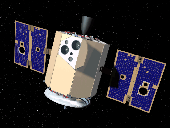 Wikipedia, Clementine (officially called the Deep Space Program Science Experiment (DSPSE)) was a joint space project between the Ballistic Missile Defense Organization (BMDO, previously the Strategic Defense Initiative Organization, or SDIO) and NASA. The objective of the mission was to test sensors and spacecraft components under extended exposure to the space environment and to make scientific observations of the Moon and the near-Earth asteroid 1620 Geographos. The Geographos observations were not made due to a malfunction in the spacecraft. The lunar observations made included imaging at various wavelengths in the visible as well as in ultraviolet and infrared, laser ranging altimetry, gravimetry, and charged particle measurements. These observations were for the purposes of obtaining multi-spectral imaging of the entire lunar surface, assessing the surface mineralogy of the Moon, obtaining altimetry from 60N to 60S latitude, and obtaining gravity data for the near side. There were also plans to image and determine the size, shape, rotational characteristics, surface properties, and cratering statistics of Geographos. Clementine carried 7 distinct experiments on-board: a UV/Visible Camera, a Near Infrared Camera, a Long Wavelength Infrared Camera, a High Resolution Camera, two Star Tracker Cameras, a Laser Altimeter, and a Charged Particle Telescope. The S-band transponder was used for communications, tracking, and the gravimetry experiment. The project was named Clementine after the song "Oh My Darling, Clementine" as the spacecraft would be "lost and gone forever" following its mission. Spacecraft designThe spacecraft was an octagonal prism 1.88 m high and 1.14 m across with two solar panels protruding on opposite sides parallel to the axis of the prism. A high-gain fixed dish antenna was at one end of the prism, and the 489 N thruster at the other end. The sensor openings were all located together on one of the eight panels, 90 degrees from the solar panels, and protected in flight by a single sensor cover. The spacecraft propulsion system consisted of a monopropellant hydrazine system for attitude control and a bipropellant nitrogen tetroxide and monomethyl hydrazine system for the maneuvers in space. The bipropellant system had a total capability of about 1900 m/s with about 550 m/s required for lunar insertion and 540 m/s for lunar departure. Attitude control was achieved with 12 small attitude control jets, two star tracker cameras, and two inertial measurement units. The spacecraft was three-axis stabilized in lunar orbit via reaction wheels with a precision of 0.05 deg in control and 0.03 deg in knowledge. Power was provided by gimbaled, single axis, GaAs/Ge solar panels which charged a 15 A·h, 47 W·h/kg Nihau (Ni-H) common pressure vessel battery. Spacecraft data processing was performed using a MIL-STD-1750A computer (1.7 MIPS) for savemode, attitude control, and housekeeping operations, a RISC 32-bit processor (18 MIPS) for image processing and autonomous operations, and an image compression system provided by the French Space Agency CNES. A data handling unit sequenced the cameras, operated the image compression system, and directed the data flow. Data was stored in a 2 Gbit dynamic solid state data recorder. MissionOn January 25, 1994, Clementine was launched from Space Launch Complex 4 West at Vandenberg Air Force Base, California using a Titan II launch vehicle. The mission had two phases. After two Earth flybys, lunar insertion was achieved approximately one month after launch. Lunar mapping took place over approximately two months, in two parts. The first part consisted of a five hour elliptical polar orbit with a periapsis of about 400 km at 30 degrees south latitude and an apoapsis of 8300 km. Each orbit consisted of an 80 minute lunar mapping phase near periapsis and 139 minutes of downlink at apoapsis. After one month of mapping the orbit was rotated to a periapsis at 30 degrees north latitude, where it remained for one more month. This allowed global imaging and altimetry coverage from 60° south to 60° north, over a total of 300 orbits. After an Earth to moon transfer and two more Earth flybys, the spacecraft was to head for Geographos, arriving three months later for a flyby, with a nominal approach closer than 100 km. Unfortunately, on May 7, 1994, after the first Earth transfer orbit, a malfunction aboard the craft caused one of the attitude control thrusters to fire for 11 minutes, using up its fuel supply and causing Clementine to spin at 80 rpm. Under these conditions, the asteroid flyby could not yield useful results, so the spacecraft was put into a geocentric orbit passing through the Van Allen radiation belts to test the various components on board. The mission ended in June 1994 when the power level onboard dropped to a point where the telemetry from the spacecraft was no longer intelligible. NASA announced on March 5, 1998 that data obtained from Clementine indicated that there is enough water in polar craters of the moon to support a human colony and a rocket fueling station. Doubt has since been cast on this interpretation, however (see Bistatic Radar Experiment). Science instrumentsCharged Particle Telescope (CPT)The Charged Particle Telescope (CPT) on Clementine was designed to measure the flux and spectra of energetic protons (3–80 MeV) and electrons (25–500 KeV). The primary goals of the investigation were to: (1) study the interaction of the Earth's magnetotail and interplanetary shocks with the Moon; (2) monitor the solar wind in regions far removed from other spacecraft as part of a multimission coordinated study; and, (3) measure the effects of incident particles on the operating ability of the spacecraft solar cells and other sensors. In order to meet the stringent limit on the mass of the instrument (<1 kg), it was implemented as a single element telescope. The telescope had a 10 degree half-angle field of view. The detector, a 