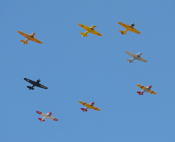 The Commemorative Air Force (CAF), formerly known as the Confederate Air Force, is a Texas-based non-profit organization dedicated to preserving and showing historical aircraft at airshows primarily throughout the U.S. and Canada. The CAF also has extensive aircraft collection on static display at the American Airpower Heritage Museum at Midland International Airport, located in Midland, Texas. HistoryThe origin of the Commemorative Air Force dates back to 1951, with the purchase of a surplus Curtiss-Wright P-40 Warhawk by Lloyd Nolen, a former World War II Army Air Forces flight instructor. In 1957, Nolen and four friends purchased a P-51 Mustang, each sharing in the $1,500 cost of the aircraft. With the purchase of the Mustang, known as Red Nose, the group was unofficially founded. In 1958, the group made their second purchase of two Grumman F8F Bearcats for $805 each. Along with the P-51, this gave the pilots the two most advanced piston-engine fighters to see service with the U.S. Army Air Forces and the United States Navy. In 1960, the CAF began seriously to search for other World War II aircraft. The CAF Colonels were shocked to find that the aircraft which played such a major role in winning World War II were being rapidly and systematically scrapped as obsolete. No one, not even the Air Force or Navy, was attempting to preserve one of each type of these historic aircraft for display for future generations. The warbirds that remained airworthy were mostly in private hands modified for air racing or had been converted for commercial use as air freighters and aerial firefighters. On September 6, 1961, the CAF was chartered as a nonprofit Texas corporation in order to restore and preserve World War II-era combat aircraft. By the end of the year, there were nine aircraft in the CAF fleet. Their first airshow was held on March 10, 1963. In 1965, the first museum building was completed at old Rebel Field, Mercedes, Texas. The CAF created a new Rebel Field at Harlingen, Texas, when they moved there in 1968, occupying three large buildings including 26,000 square feet (2,400 m) of museum space. The CAF fleet continued to grow. By the end of the decade, the CAF fleet included medium and heavy bombers such as the B-25, B-17, B-24. In 1971, they added the world's only airworthy B-29 Superfortress, Fifi. The group's accomplishments were recognized in 1989 when it became a National Aviation Hall of Fame inductee. The year 1991 marked the beginning of a new era for the CAF with the opening of the new Midland, Texas, headquarters and museum facilities. Since its move to Midland, the American Airpower Heritage Museum and the American Combat Airman Hall of Fame have been established. MembersToday, the Commemorative Air Force comprises over 11,000 members comprising more than 70 regional groups, called wings or detachments, in 27 states and 4 other countries. Several hundred members actively serve as pilots and flight and/or maintenance crew members committed to preserving American combat aviation heritage. The CAF is an all-volunteer organization, made up of members from all walks of life. Membership is open to all men and women, age 18 or older. Those who are 13 years of age or older, may join as Cadet members. You need not be a veteran nor a pilot to join the CAF. Privately funded and totally self-supporting, the nonprofit, tax-exempt group is dedicated to preserving the military aviation heritage of World War II. NameThe original name, Confederate Air Force, started as a simple tongue in cheek type of joke, poking fun at their ragtag beginnings. As the collection of warbirds at Central Valley Airport in Mercedes, Texas started to grow, someone painted the name on the side of the original P-51 Mustang "Red Nose". The name stuck, and it grew to the point where the airport was renamed Rebel Field, all members were called "Colonels" (a tradition which still remains), and it led to the creation of a fictitious leader named Colonel Jethro E. Culpepper. There was even a humorous CAF twist put to the old AVG Flying Tigers WWII "blood chit" that read, “This foreign person has come to China to help in the war effort. Soldiers and civilians, one and all, should rescue, protect, and provide him medical care.” The CAF version seen on the backs of flight suits and flight jackets stated, "This is a CAF aviator. If found lost or unconscious, please hide him from Yankees, revive with mint julep and assist him in returning to friendly territory. CONFEDERATE AIR FORCE". In 2002 it changed its name to Commemorative Air Force after a vote of the membership. Many felt the name Confederate Air Force was confusing, did not accurately reflect the purpose of the organization, and was detrimental to fundraising efforts.This name change was deemed by some fans to be a move of political correctness. The reason for the name change as stated by the organization was "Because the word "Confederate" is offensive to some." MarkingsIn line with the tongue-in-cheek nature of the CAF, restored airframes of US origin would bear traditional US 'star-and-bar' roundel markings on their fuselage starboard side, and on the port side a Confederate 'flag-and-bar', where the flag of the Confederate States replaces the star in the center of the roundel. Exceptions to this are the replicated Japanese aircraft of the "Tora! Tora! Tora!" group, and German aircraft. The practice has since not been continued after the CAF's voluntary name change, though it remains part of their humorous legacy. ObjectivesThe main objectives of the CAF are::