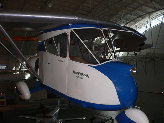 Glenn Curtiss, the Wrights' chief rival, was the first to design a flying car. The first flying car to actually fly was built by Waldo Waterman. Waterman became associated with Curtiss while Curtiss was pioneering naval aviation at North Island on San Diego Bay in the 1910s. However, it was not until March 21, 1937 that Waterman's Aerobile first took to the air. The Aerobile was a development of Waterman's tailless aircraft, the Whatsit. It had a wingspan of 38 feet (11 m) and a length of 20 feet 6 inches (6.25 m). On the ground and in the air it was powered by a Studebaker engine. It could fly at 112 mph (180 km/h) and drive at 56 mph (90 km/h).