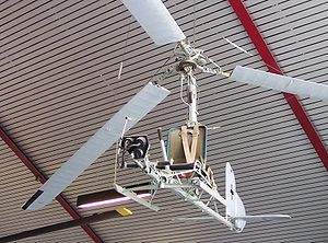 A rotor kite or gyroglider is an unpowered, rotary-wing aircraft. Like an autogyro or helicopter, it relies on lift created by one or more sets of rotors in order to fly. Unlike a helicopter, autogyros and rotor kites do not have an engine powering their rotors, but while an autogyro has an engine providing forward thrust that keeps the rotor turning, a rotor kite has no engine at all, and relies on either being carried aloft and dropped from another aircraft, or by being towed into the air behind a car or boat. As of 2008, no country in the world requires a license to pilot such a craft. HistoryResearch into rotor kites began in earnest during World War II, and one type in particular, the Focke Achgelis Fa 330, reached active service, being towed behind German U-boats as an aerial observation platform. In the United Kingdom, the Hafner Rotachute was investigated as a means of deploying paratroops, and a larger version, the Rotabuggy was trialled as a means of air-dropping a Jeep, but neither of these aircraft progressed past the experimental stage. Plans to similarly equip a tank (the Rotatank) never left the drawing board. During the 1950s, rotor kites were developed as recreational aircraft, largely due to the efforts of Dr. Igor Bensen in the United States, whose Bensen Aircraft Corporation produced a series of such aircraft, dubbed "gyrogliders" by Bensen. These were marketed as plans or kits for building at home, beginning with the B-5 and culminating in the definitive B-8 by the end of the decade. The Bensen designs became so ubiquitous that the term "gyroglider" is sometimes used to refer to any rotor kite, regardless of manufacturer. In the 1960s, a B-8 gyroglider was evaluated by the United States Air Force as a "Discretionary Descent Vehicle", to provide a more controllable alternative than a parachute for a pilot ejecting from a stricken aircraft. See alsoExternal links
