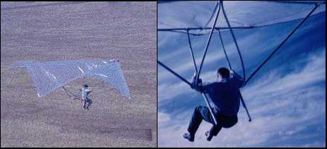 Hang gliding is an air sport employing foot-launchable aircraft known as a hang gliders. Typically, hang gliders are composed of an aluminium or composite framed fabric wing. The pilot is ensconced in a harness depending from the airframe, and exercises control by shifting body weight in opposition to a control frame. OverviewEarly hang glider designs did not reliably achieve safe flight, their builders lacking a comprehensive understanding of the underlying principles of flight. The first recorded controlled flights were by German engineer Otto Lilienthal, whose research, published in 1889, strongly influenced later designers. The type of aircraft employed by Lilienthal is now referred to as a hang glider. Further hang glider research was undertaken during the 1920s in Europe, Australia and the U.S.A, where designers tested several wing concepts and the 'pendulum weight-shift control system'. In 1957 the American space agency NASA began testing various formats of a new wing called the Rogallo wing with the intent of possibly implementing the design as a recovery system for the Gemini space capsules. The wing's simplicity of design and ease of construction, in combination with its slow flight characteristics, did not go unnoticed by hang glider enthusiasts; Rogallo's flexible wing airfoil was soon adapted to the purpose of recreational flight, launching a hang glider Renaissance. Early history