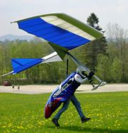 The simplicity of the Rogallo wing, ease of construction, capability of slow flight and its gentle landing characteristics did not go unnoticed by some hang glider and ultralight glider enthusiasts. The publicity on the Fleep and the Paresev tests sparked interest in independent builders like Barry Palmer and John Dickenson, who separately explored distinct airframes and control systems to be adapted to a Rogallo wing and be flown as a hang glider. On August 1961, American engineer Barry Palmer developed and flew the first foot-launched Rogallo wing hang glider. This took place near Latrobe, east of Sacramento, California. Palmer used aluminium tubing and no wires for construction, fearing kinking during assembly. Most flights were performed with just a set of inclined parallel bars that split his weight between his underarms and hands and he demonstrated that the Rogallo wing, when used as a hang glider, could also be controlled by weight-shift alone. The last of Palmer's foot-launched hang gliders flew in the summer of 1962 and it had a ski-lift type of seat mounted to the keel with a universal joint for pendulum weight-shift control; a single control stick was projected down from the wing. During the period from 1961 to 1963 Barry Palmer made tens of flights using this concept. His longest flight ranged in length up to 180 metres (590 ft), at altitudes up to 24 metres (79 ft), and had an overall glide ratio of 4.5 to 1. In April 1963 Mike Burns first flew the Skiplane, a flexible wing glider on pontoons. In Septermber 1963, Australian John Dickenson set out to build a water ski wing that could be released at altitude and glide to a safe landing. After seeing a Rogallo airfoil in a magazine, Dickenson designed the ski kite he called the Ski Wing. Dickenson fashioned an airframe that incorporated a triangle control frame and utilized wire bracing to distributed the load to the Rogallo airfoil; the pilot sat on a swinging seat. Dickenson's Ski Wing was stable and controllable compared to the flat manned kites used at water ski shows at the time. The Ski Wing was first flown in public at the Grafton Jacaranda Festival, Australia, in September 1963 by Rod Fuller while towed behind a motorboat. The Ski Wing was light and portable so Dickenson decided to file for a patent; however, lacking resources, Dickenson procured a provisional patent - which would later lapse. By 1972, australian builders Bill Bennett and Bill Moyes developed the Dickenson format of water ski kite into a foot-launched hang glider. Rigid wing hang glidersThere have been several rigid wing hang gliders flown since Otto Lilienthal took his first flights in the 1890s. Jack Lambie from California, designed in 1971 the popular Hang Loose Chanute hang glider, and the first two high performing modern hang gliders were the Mitchell Wing and the Icarus. On 1971 and 1972 the Icarus I and Icarus II were built, respectively. These were rigid biplane flying wing designs by Taras Kiceniuk, Jr. The Icarus V was essentially a monoplane version of the previous Icarus designs. All of the hang gliders in the Icarus series had hand-controlled rudders and the pilot flew in a reclining position (rather than a prone position as with other hang gliders). Although many Icarus II and Icarus V gliders were built from plans sold by Kiceniuk, they were never commercially produced. In the early 1940s Don Mitchell, an aeronautical engineer, first became involved with flying wing glider design and construction. WWII interrupted his research until 1974, with the advent of hang glider mania, adventurers were experimenting with design and exploring records worldwide. It was then that Mitchell's flying wing resurfaced. Dr. Howard Long took an interest and asked Don Mitchell to make him a refined 'flying wing' hang glider. The result was the foot-launched Mitchell Wing. When the foot-launched Mitchell Wing B-10 flew in the 1977 U.S.A. Nationals, the hang gliding world was completely astounded. The Mitchell Wing then went on to set and hold every world record in its class. In 1980, George Worthington soared to 17,000 feet (5,200 m) high and glided 105 miles (169 km), setting two new rigid wing records. The Mitchell Wing had a single "D" spar with aircraft birch plywood torsion proof leading edge and 3-axes control. Foam ribs placed every 4.5 inches (110 mm) hold the D shape. The built-up truss ribs aft of the spar are covered with fabric. This structural design is simple, extremely strong and light (under 80 Lbs). The Exxtacy, designed by Felix Ruehle In the early 1990s, followed by the IXBO, became the first two rigid wing hang gliders on the market with a leading edge of carbon fiber. Ruehle then produced the ATOS in 1999. The nose angle and wing span of modern rigid wings are a little larger than flexible wings and the sail is rather stiff. PopularityThe research by NASA as well as government reports and photographs of the flexible wing, were published and became available to the general public and soon, the Rogallo wing was turned into an easily constructed, inexpensive, foot-launchable glider. Barry Palmer corresponded Richard Miller, who in 1964 developed the Bamboo Butterfly, followed by Tara Kiceniuk's Batso. Dave Kilbourne published his plan for a Rogallo wing Kilbo Kite hang glider in the early 1970s. Jim Foreman produced the Bat-Glider plans for a Rogallo wing hang glider and sold copies for $5 USD throughout the world; later, Taras Kiceniuk, Tom Dickinson and two other team members made a similar hang glider called Batso and sold copies of its plans. The plans of these hang gliders circulated in some magazines in the mid 1960s. Eventually, word of John Dickenson's success got out and more portable flexible wing gliders were built; the sudden commercial availability of his improved water ski hang gliders in 1969 by manufacturers like Bill Bennett (Delta Wing) and Bill Moyes (Moyes Gliders) added signinicantly to the flexible wing's popularity, wh