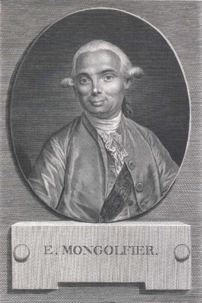 Wikipedia, Joseph-Michel Montgolfier (26 August 1740 – 26 June 1810) and Jacques-Étienne Montgolfier (6 January 1745 – 2 August 1799) were the inventors of the montgolfière style hot air balloon, globe aérostatique or airship. The brothers succeeded in launching the first manned ascent, carrying a young physician, Jean-François Pilâtre de Rozier, and an audacious army officer, François Laurent d'Arlandes, into the sky. Later, in December 1783 in recognition of their achievement, their father Pierre was elevated to the nobility and the hereditary appellation of de Montgolfier by King Louis XVI of France. Early yearsThe brothers were born into a family of paper manufacturers in Annonay, in Ardèche, France. Their parents were Pierre Mongolfier (1700-1793), and his wife Anne Duret (1701-1760), who had sixteen children. Pierre established his eldest son Raymond Montgolfier, later Raymond de Montgolfier (1730-1792) as his successor. Joseph, the 12th child, possessed a typical inventor's temperament -- a maverick and dreamer, and impractical in terms of business and personal affairs. Étienne had a much more even and businesslike temperament. As the 15th child, and particularly troublesome to his elder siblings, he was sent to Paris to train as an architect. However, after the sudden and unexpected death of Raymond in 1772, he was recalled to Annonay to run the family business. In the subsequent 10 years, Étienne applied his talent for technical innovation to the family business; papermaking was a high-tech industry in the 18th century. He succeeded in incorporating the latest Dutch innovations of the day into the family mills. His work led to recognition by the government of France as well as the awarding of a government grant to establish the Montgolfier factory as a model for other French papermakers. Initial experimentsOf the two brothers, it was Joseph who first contemplated building "machines" . Gillispie puts it as early as 1777 when Joseph observed laundry drying over a fire incidentally form pockets that billowed upwards. Joseph made his first definitive experiments in November of 1782 while living in the city of Avignon. He reported, some years later, that he was watching a fire one evening while contemplating one of the great military issues of the day -- an assault on the fortress of Gibraltar, which had proved impregnable by both sea and land. Joseph mused on the possibility of an air assault using troops lifted by the same force that was lifting the embers from the fire. He believed that contained within the smoke was a special gas, which he called 'Montgolfier Gas', with a special property he called 'levity'. As a result of these musings, Joseph set about building a box-like chamber 1x1x1,3m (3 ft by 3 ft (0.91 m) by 4 ft) out of very thin wood and covering the sides and top with lightweight taffeta cloth. Under the bottom of the box he crumpled and lit some paper. The contraption quickly lifted off its stand and collided with the ceiling. Joseph then recruited his brother to balloon building by writing the prophetic words: "Get in a supply of taffeta and of cordage, quickly, and you will see one of the most astonishing sights in the world." The two brothers then set about building a contraption 3 times larger in scale (27 times larger in volume). The lifting force was so great that they lost control of their craft on its very first test flight on 14 December 1782. The device floated nearly 2 kilometres (about 1.2 mi). It was destroyed after landing by the "indiscretion" of passersby. Public demonstrationsThe brothers decided to make a public demonstration of a balloon in order to establish their claim to its invention. They constructed a globe-shaped balloon of sackcloth with three thin layers of paper inside. The envelope could contain nearly 790 m³ (28,000 cubic feet) of air and weighed 225 kg (500 lb). It was constructed of four pieces (the dome and three lateral bands), and held together by 1,800 buttons. A reinforcing "fish net" of cord covered the outside of the envelope. On 4 June 1783, they flew this craft as their first public demonstration at Annonay in front of a group of dignitaries from the Etats particulars. Its flight covered 2 km (1.2 mi), lasted 10 minutes, and had an estimated altitude of 1.600 - 2.000m (5,200 - 6,600 ft). Word of their success quickly reached Paris. Etienne went to the capital to make further demonstrations and to solidify the brothers' claim to the invention of flight. Joseph, given his unkempt appearance and shyness, remained with the family. Etienne was the epithome of sober virtues ... modest in clothes and manner... He was dressed stylishly in black.