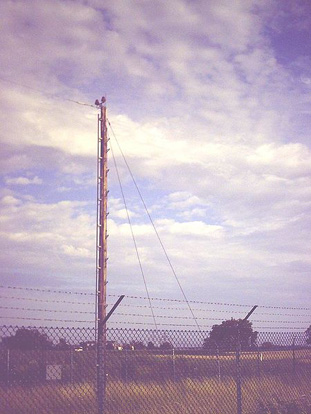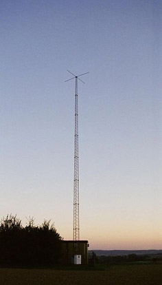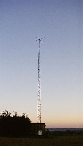 Instrument landing systemsNDBs are most commonly used as markers for an instrument landing system (ILS) approach and standard approaches. NDBs may designate the starting area for an ILS approach or a path to follow for a standard terminal arrival procedure, or STAR. In the United States, an NDB is often combined with the outer marker beacon in the ILS approach (called a Locator Outer Marker, or LOM); in Canada, low-powered NDBs have replaced marker beacons entirely. Marker beacons on ILS approaches are now being phased out worldwide with DME ranges used instead to delineate the different segments of the approach. TechnicalNDBs typically operate in the frequency range from 190 kHz to 535 kHz (although they are allocated frequencies from 190 to 1750 kHz) and transmit a carrier modulated by either 400 or 1020 Hz. NDBs can also be colocated with DME in a similar installation for the ILS as the outer marker, only in this case, they function as the inner marker. NDB owners are mostly governmental agencies and airport authorities. Antennas have as part of their makeup a segment that consists of an inductor and a capacitor in series "tuned" to the particular frequency or frequencies assigned to that antenna. NDB's tuned segment is part of the antenna itself. What is viewed as the Vertical part of the antenna tends to be the supporting pylon for the capacitive element. At low frequencies the antenna itself is capacitive. (functions as the capacitor in the system). There is often a counterpoise (or bottom section of the capacitor) buried in the ground underneath the antenna. The inductive section is the feedline, and the vertical antenna element itself. Other information transmitted by an NDBApart from Morse Code Identity of either 400 Hz or 1020 Hz, the NDB may broadcast: