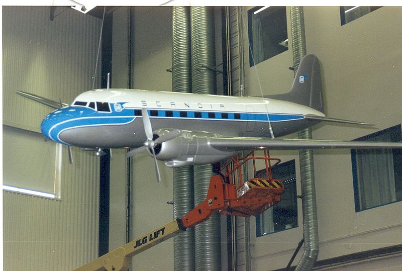 The first trip went to Paris where the extra fuel tanks were removed. On August 23 SE-BCA arrived to Addis Abeba (Ethiopia). The following day emperor Haile Selassie went on a demonstration tour. Present on this tour was also Carl von Rosen, who at the time was counsellor for the Ethiopian Air Force. Athen, Kairo, Asmara, Port Sudan and Luxor were also visited on this tour. On this tour the plane was subjected to temperatures of 50C, with no problems. When the plane returned to Paris the extra fuel tanks were reinstalled. On September 4 SE-BCA left Paris with destination of Pratt & Whitney's homebase in Hartford, Connecticut. Stop-overs in Greenland, Iceland and Prestwick. The trip took 3 days. In Hartford the extra fuel tanks were removed and the interior was refitted. A extensive demonstration program all over the USA took place. Some of the cities visited were New York, Washington, Chicago, Miami, Los Angeles and Houston. In Los Angeles Howard Hughes flew the Scandia, and he praised the design. On October 14 the Scandia returned to Hartford. Airline serviceThe first production Scandias were delivered in 1950. SAS received their eight aircraft between October 1950 and October 1954. SAS initially operated their Scandias on intra-Scandinavian flights. Scheduled services by Scandias were also operated to European cities including London Airport (Heathrow) between 1953 and 1955. VASP operated their fleet of new and ex-SAS Scandias on intra-Brasilian scheduled flights between October 1950 and late 1966. The EndThe Swedish Air Force put heavy and insistent demands upon the SAAB factory, for the Saab 29 Tunnan fighter aircraft, which spelled the end of the Scandia project in Sweden, with residual production being undertaken by Fokker, in the Netherlands. Altogether, only 18 examples were manufactured. The entire SAS fleet was eventually purchased by VASP, in 1957. A larger version with pressurised cabin called 90B was planned, but never made. The last flight with a 90 Scandia was on July 22, 1969. Variants