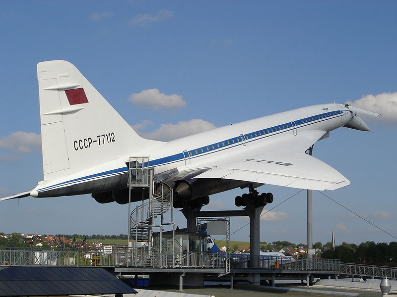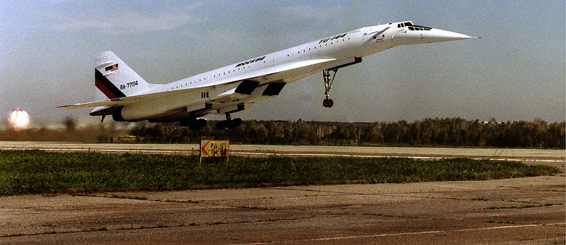 The Soviets published the concept of the Tu-144 in an article in the January 1962 issue of the magazine Technology of the Air Transport. The air ministry started development of the Tu-144 on 26 July 1963, following approval by the Council of Ministers 10 days earlier. The plan called for five flying prototypes to be built in four years. The first aircraft was to be ready in 1966. Despite the close similarity in appearance of the Tu-144 to the Anglo-French supersonic aircraft, there were significant differences in the control, navigation and engine systems. The Tu-144 was in some ways a more technologically advanced aircraft, but in areas such as range, aerodynamic sophistication, braking and engine control, it lagged behind Concorde. While Concorde utilized an electronic engine control package from Lucas, Tupolev was not permitted to purchase it for the Tu-144 as it could also be used on military aircraft. Concorde's designers used the fuel of this airliner as the coolant for air conditioning the cabin and the hydraulic system (see Concorde#Heating issues for details). Tupolev installed additional equipment on the Tu-144 to accomplish this, increasing the weight of that airliner. One important offshoot of this was that while Concorde could supercruise (maintain supersonic flight without using its afterburners), the Tu-144 could not. Later work on the Tu-144S did resolve this shortcoming. Tupolev continued to work to improve the Tu-144. Many substantial upgrades and changes were made on the Tu-144 prototype (serial number 68001). While both Concorde and the Tu-144 prototype had ogival delta wings, the Tu-144's wing lacked Concorde's conical camber. Production Tu-144s replaced this wing with a double-delta wing including conical camber, and they added an extra simple but practical device: two small retractable canard surfaces on either side of the forward section on the aircraft to increase lift at low speed. Moving the elevons downward in a delta-wing aircraft increases the lift, but that also pitches its nose downward. The canard cancels out this nose-downwards moment, thus reducing the landing speed of the production Tu-144s to 315-333 km/h (170-180 kn, 196-207 mph) - however, still faster than that of Concorde. Paris Air Show crashAt the Paris Air Show on 3 June 1973, the development program of the Tu-144 suffered severely when the first Tu-144S production airliner (reg 77102) crashed. While in the air, the Tu-144 underwent a violent downwards maneuver. Trying to pull out of the subsequent dive, the Tu-144 broke up and crashed, destroying 15 houses and killing all six people on board the Tu-144 and eight more on the ground. The causes of this incident remain controversial to this day. A popular theory was that the Tu-144 was forced to avoid a French Mirage chase plane which was attempting to photograph its canards, which were very advanced for the time, and that the French and Soviet governments colluded with each other to cover up such details. The flight of the Mirage was denied in the original French report of the incident, perhaps because it was engaged in industrial espionage. More recent reports have admitted the existence of the Mirage (and the fact that the Russian crew were not told about the Mirage's flight) though not its role in the crash. However, the official press release did state: "though the inquiry established that there was no real risk of collision between the two aircraft, the Soviet pilot was likely to have been surprised." Another theory claims that the black box was actually recovered by the Soviets and decoded. The cause of this accident is now thought to be due to changes made by the ground engineering team to the auto-stabilisation input controls prior to the second day of display flights. These changes were intended to allow the Tu-144 to outperform Concorde in the display circuit. Unfortunately, the changes also inadvertently connected some factory-test wiring which resulted in an excessive rate of climb, leading to the stall and subsequent crash. A third theory relates to deliberate misinformation on the part of the Anglo-French team. The main thrust of this theory was that the Anglo-French team knew that the Soviet team were planning to steal the design plans of Concorde, and the Soviets were allegedly passed false blueprints with a flawed design. The case, it is claimed, contributed to the imprisonment by the Soviets of Greville Wynne in 1963 for spying. Wynne was imprisoned on 11 May 1963 and the development of the Tu-144 was not sanctioned until 16 July. In any case, it seems unlikely that a man imprisoned in 1963 could have caused a crash in 1973. Operational service