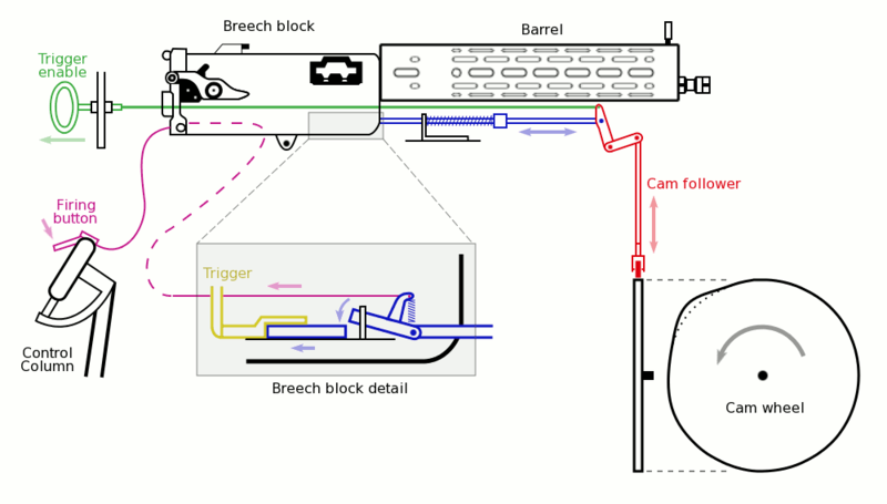The Maxim guns used by both the Allies (as the Vickers) and Germany (as the LMG 14 Parabellum and LMG 08 Spandau) had a closed bolt firing cycle that started with a bullet already in the breech and the breech closed, so the firing of the bullet was the next step in the cycle. This meant that the exact instant the round would be fired could be predicted with precision, making these weapons considerably easier to synchronize. The standard French light machine gun, the Hotchkiss, was also most unamenable to synchronisation due to rounds "hanging fire" – and the Morane-Saulnier company designed a "safety backup" in the form of "deflector blades" (metal wedges) fitted to the propeller at the point where they would be struck by a bullet. Roland Garros trialled this system in a Morane-Saulnier L in April 1915. He managed to score several kills, but it was proved to be an inadequate and dangerous solution. Garros eventually was forced by engine failure (possibly caused by the repeated strain on his aircraft's crankshaft of the "deflected" bullets striking his propeller) to land behind enemy lines, and he, and his aircraft, were captured by the Germans. Famously – the German High Command passed Garros' Morane to the Fokker company, who already produced Morane type monoplanes for the German Air Service – with orders to copy the latest design. The deflector system was totally unsuitable for the steel jacketed German ammunition so that the Fokker engineers were forced to revisit the synchronisation idea (perhaps infringing Schneider's patent) – resulting in the Eindecker fighter series. Crude as these little monoplanes were, they produced a period of German air superiority, known as the "Fokker Scourge" by the Allies. The psychological effect exceeded the material - the Allies had up to now been more or less unchallenged in the air, and the vulnerability of their older reconnaissance aircraft, especially the British B.E.2 and French Farman pushers, came as a very nasty shock. Other methodsAnother method used at this time to fire a machine gun forward from a tractor design was to mount the gun to fire above the propeller arc. This required the gun to be mounted on the top wing of biplanes and be propped up and secured by complicated, drag inducing mounting in monoplanes. Reaching the gun so that drums or belts could be changed, or jams cleared, presented problems – even when the gun could be mounted relatively close to the pilot. Eventually the excellent Foster mounting became more or less the standard way of mounting a Lewis gun in this position in the R.F.C.- this allowed the gun to slide backward for drum changing, and also to be fired at an upward angle, a very effective way of attacking an enemy from the "blind spot" under his tail. This type of mounting was still only possible for a biplane with a top wing positioned near the apex of the propeller's arc - it put considerable strain on the fragile wing structures of the period, and it was much less rigid than a gun mounting on the fuselage - producing a greater "scatter" of bullets, especially at anything but very short range. The earliest versions of the Bristol Scout to see aerial combat duty in 1915, the Scout C, had Lewis gun mounts in RNAS service that sometimes were elevated above the propeller arc, and sometimes (in an apparently reckless manner) firing directly through the propeller arc without synchronisation. Captain Lanoe Hawker of the Royal Flying Corps, however, had mounted his Lewis gun just forward of the cockpit to fire forwards and outwards, on the left side of his aircraft's fuselage at about a 30º angle, on his Scout C, with serial number 1611, and with this aircraft on July 25, 1915, managed to defeat three German two seat observation aircraft to earn the first Victoria Cross awarded to a British aviator. 1915: The Fokker Scourge