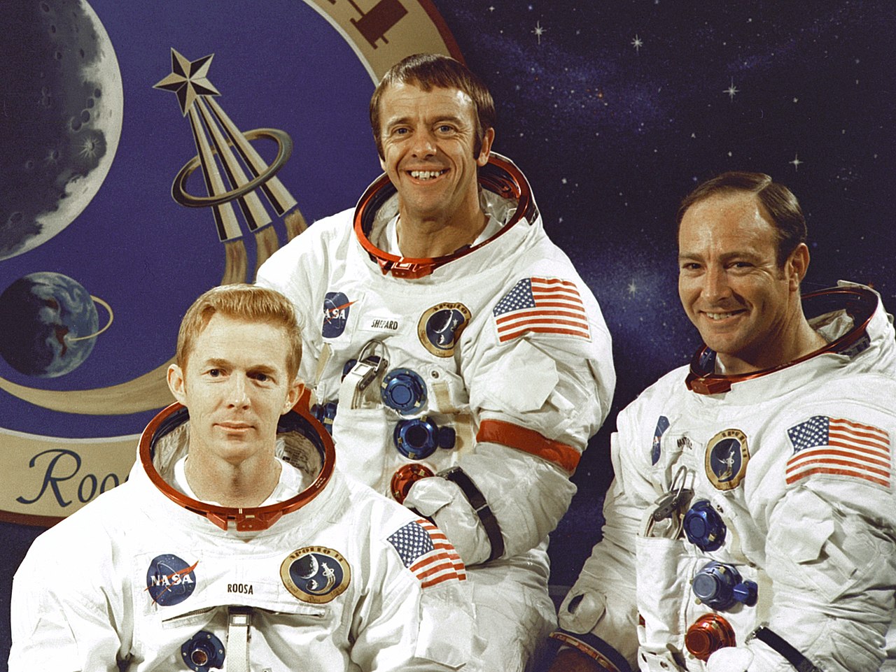 The mission commander of Apollo 14, Alan Shepard, one of the original Mercury Seven astronauts, became the first American to enter space with a suborbital flight on May 5, 1961. Thereafter, he was grounded by Ménière's disease, a disorder of the ear, and served as Chief Astronaut, the administrative head of the Astronaut Office. He had experimental surgery in 1968 which was successful and allowed his return to flight status. Shepard, at age 47, was the oldest U.S. astronaut to fly when he made his trip aboard Apollo 14, and he is the oldest person to walk on the Moon. Apollo 14's Command Module Pilot (CMP), Stuart Roosa, aged 37 when the mission flew, had been a smoke jumper before joining the Air Force in 1953. He became a fighter pilot and then in 1965 successfully completed Aerospace Research Pilot School (ARPS) at Edwards Air Force Base in California prior to his selection as a Group 5 astronaut the following year. He served as a capsule communicator (CAPCOM) for Apollo 9. The Lunar Module Pilot (LMP), Edgar Mitchell, aged 40 at the time of Apollo 14, joined the Navy in 1952 and served as a fighter pilot, beginning in 1954. He was assigned to squadrons aboard aircraft carriers before returning to the United States to further his education while in the Navy, also completing the ARPS prior to his selection as a Group 5 astronaut. He served on the support crew for Apollo 9 and was the LMP of the backup crew for Apollo 10. Shepard and his crew had originally been designated by Deke Slayton, Director of Flight Crew Operations and one of the Mercury Seven, as the crew for Apollo 13. NASA's management felt that Shepard needed more time for training given he had not flown in space since 1961, and chose him and his crew for Apollo 14 instead. The crew originally designated for Apollo 14, Jim Lovell as the commander, Ken Mattingly as CMP and Fred Haise as LMP, all of whom had backed up Apollo 11, was made the prime crew for Apollo 13 instead. Mitchell's commander on the Apollo 10 backup crew had been another of the original seven, Gordon Cooper, who had tentatively been scheduled to command Apollo 13, but according to author Andrew Chaikin, his casual attitude toward training resulted in him being not selected . Also on that crew, but excluded from further flights, was Donn Eisele, likely because of problems aboard Apollo 7, which he had flown, and because he had been involved in a messy divorce. Apollo 14's backup crew was Eugene A. Cernan as commander, Ronald E. Evans Jr. as CMP and Joe H. Engle as LMP. The backup crew, with Harrison Schmitt replacing Engle, would become the prime crew of Apollo 17. Schmitt flew instead of Engle because there was intense pressure on NASA to fly a scientist to the Moon (Schmitt was a geologist) and Apollo 17 was the last lunar flight. Engle, who had flown the X-15 to the edge of outer space, flew into space for NASA in 1981 on STS-2, the second Space Shuttle flight. During projects Mercury and Gemini, each mission had a prime and a backup crew. Apollo 9 commander James McDivitt believed meetings that required a member of the flight crew were being missed, so for Apollo a third crew of astronauts was added, known as the support crew. Usually low in seniority, support crew members assembled the mission's rules, flight plan, and checklists, and kept them updated; for Apollo 14, they were Philip K. Chapman, Bruce McCandless II, William R. Pogue and C. Gordon Fullerton. CAPCOMs, the individuals in Mission Control responsible for communications with the astronauts were Evans, McCandless, Fullerton and Haise. A veteran of Apollo 13, which had aborted before reaching the Moon, Haise put his training for that mission to use, especially during the EVAs, since both missions were targeted at the same place on the Moon. Had Haise walked on the Moon, he would have been the first Group 5 astronaut to do so, an honor that went to Mitchell. The flight directors during Apollo had a one-sentence job description, "The flight director may take any actions necessary for crew safety and mission success." For Apollo 14, they were: Pete Frank, Orange team; Glynn Lunney, Black team; Milt Windler, Maroon team and Gerry Griffin, Gold team. Preparation and trainingPrime and backup crews for both Apollo 13 and 14 were announced on August 6, 1969. Apollo 14 was scheduled for July 1970, but in January of that year, due to budget cuts that saw the cancellation of Apollo 20, NASA decided there would be two Apollo missions per year with 1970 to see Apollo 13 in April and Apollo 14 likely in October or November. The investigation into the accident which caused an abort of Apollo 13 delayed Apollo 14. On May 7, 1970, NASA Administrator Thomas O. Paine announced that Apollo 14 would launch no earlier than December 3, and the landing would be close to the site targeted by Apollo 13. The Apollo 14 astronauts continued their training. On June 30, 1970, following the release of the accident report and a NASA review of what changes to the spacecraft would be necessary, NASA announced that the launch would slip to no earlier than January 31, 1971. The crew of Apollo 14 trained together for 19 months after assignment to the mission, longer than any other Apollo crew to that point. In addition to the normal training workload, they had to supervise the changes to the command and service module (CSM) made as a result of the Apollo 13 investigation, much of which was delegated by Shepard to Roosa. Mitchell later stated, "We realized that if our mission failed—if we had to turn back—that was probably the end of the Apollo program. There was no way NASA could stand two failures in a row. We figured there was a heavy mantle on our shoulders to make sure we got it right." Before the abort of the Apollo 13 mission, the plan was to have Apollo 14 land near Littrow crater, in Mare Serenitatis, where there are features that were thought to be volcanic. After Apollo 13 returned, it was decided that its landing