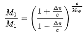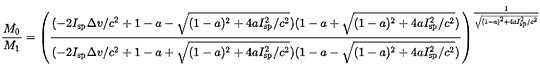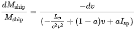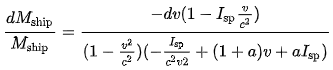 where c is the speed of light, and Isp is the specific impulse (i.e. Isp=0.69c). The derivative form of the equation is