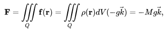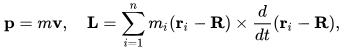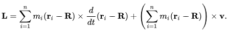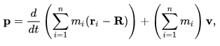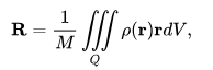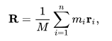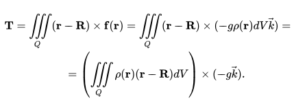 Diagram of an educational toy that balances on a point: the center of mass (C) settles below its support (P) DefinitionThe center of mass is the unique point at the center of a distribution of mass in space that has the property that the weighted position vectors relative to this point sum to zero. In analogy to statistics, the center of mass is the mean location of a distribution of mass in space. A system of particlesIn the case of a system of particles Pi, i = 1, …, n , each with mass mi that are located in space with coordinates ri, i = 1, …, n , the coordinates R of the center of mass satisfy the condition ![]() Solving this equation for R yields the formula ![]() A continuous volumeIf the mass distribution is continuous with the density ρ(r) within a solid Q, then the integral of the weighted position coordinates of the points in this volume relative to the center of mass R over the volume V is zero, that is Solve this equation for the coordinates R to obtain where M is the total mass in the volume. If a continuous mass distribution has uniform density, which means ρ is constant, then the center of mass is the same as the centroid of the volume. Barycentric coordinatesThe coordinates R of the center of mass of a two-particle system, P1 and P2, with masses m1 and m2 is given by Let the percentage of the total mass divided between these two particles vary from 100% P1 and 0% P2 through 50% P1 and 50% P2 to 0% P1 and 100% P2, then the center of mass R moves along the line from P1 to P2. The percentages of mass at each point can be viewed as projective coordinates of the point R on this line, and are termed barycentric coordinates. Another way of interpreting the process here is the mechanical balancing of moments about an arbitrary point. The numerator gives the total moment that is then balanced by an equivalent total force at the center of mass. This can be generalized to three points and four points to define projective coordinates in the plane, and in space, respectively. Systems with periodic boundary conditionsFor particles in a system with periodic boundary conditions two particles can be neighbours even though they are on opposite sides of the system. This occurs often in molecular dynamics simulations, for example, in which clusters form at random locations and sometimes neighbouring atoms cross the periodic boundary. When a cluster straddles the periodic boundary, a naive calculation of the center of mass will be incorrect. A generalized method for calculating the center of mass for periodic systems is to treat each coordinate, x and y and/or z, as if it were on a circle instead of a line. The calculation takes every particle’s x coordinate and maps it to an angle, where xmax is the system size in the x direction and In the where M is the sum of the masses of all of the particles. These values are mapped back into a new angle, The process can be repeated for all dimensions of the system to determine the complete center of mass. The utility of the algorithm is that it allows the mathematics to determine where the «best» center of mass is, instead of guessing or using cluster analysis to «unfold» a cluster straddling the periodic boundaries. It must be noted that if both average values are zero, Center of gravityA body’s center of gravity is the point around which the resultant torque due to gravity forces vanishes. Where a gravity field can be considered to be uniform, the mass-center and the center-of-gravity will be the same. However, for satellites in orbit around a planet, in the absence of other torques being applied to a satellite, the slight variation (gradient) in gravitational field between closer-to (stronger) and further-from (weaker) the planet can lead to a torque that will tend to align the satellite such that its long axis is vertical. In such a case, it is important to make the distinction between the center-of-gravity and the mass-center. Any horizontal offset between the two will result in an applied torque. It is useful to note that the mass-center is a fixed property for a given rigid body (e.g. with no slosh or articulation), whereas the center-of-gravity may, in addition, depend upon its orientation in a non-uniform gravitational field. In the latter case, the center-of-gravity will always be located somewhat closer to the main attractive body as compared to the mass-center, and thus will change its position in the body of interest as its orientation is changed. In the study of the dynamics of aircraft, vehicles and vessels, forces and moments need to be resolved relative to the mass center. That is true independent of whether gravity itself is a consideration. Referring to the mass-center as the center-of-gravity is something of a colloquialism, but it is in common usage and when gravity gradient effects are negligible, center-of-gravity and mass-center are the same and are used interchangeably. In physics the benefits of using the center of mass to model a mass distribution can be seen by considering the resultant of the gravity forces on a continuous body. Consider a body Q of volume V with density ρ(r) at each point r in the volume. In a parallel gravity field the force f at each point r is given by, where dm is the mass at the point r, g is the acceleration of gravity, and k is a unit vector defining the vertical direction. Choose a reference point R in the volume and compute the resultant force and torque at this point, and If the reference point R is chosen so that it is the center of mass, then which means the resultant torque T=0. Because the resultant torque is zero the body will move as though it is a particle with its mass concentrated at the center of mass. By selecting the center of gravity as the reference point for a rigid body, the gravity forces will not cause the body to rotate, which means the weight of the body can be considered to be concentrated at the center of mass. Linear and angular momentumThe linear and angular
