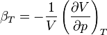Wikipedia, In thermodynamics and fluid mechanics, compressibility (also known as the coefficient of compressibility or isothermal compressibility) is a measure of the relative volume change of a fluid or solid as a response to a pressure (or mean stress) change. where V is volume and p is pressure. The minus sign makes the compressibility positive in the (usual) case that an increase in pressure induces a reduction in volume. DefinitionThe specification above is incomplete, because for any object or system the magnitude of the compressibility depends strongly on whether the process is adiabatic or isothermal. Accordingly, isothermal compressibility is defined: where the subscript T indicates that the partial differential is to be taken at constant temperature. Isentropic compressibility is defined: where S is entropy. For a solid, the distinction between the two is usually negligible. Relation to speed of soundThe speed of sound is defined in classical mechanics as: where is the density of the material. It follows, by replacing partial derivatives, that the isentropic compressibility can be expressed as: Relation to bulk modulusThe inverse of the compressibility is called the bulk modulus, often denoted K (sometimes B). That page also contains some examples for different materials. The compressibility equation relates the isothermal compressibility (and indirectly the pressure) to the structure of the liquid. Thermodynamicswhere p is the pressure of the gas, T is its temperature, and is its molar volume. In the case of an ideal gas, the compressibility factor Z is equal to unity, and the familiar ideal gas law is recovered: Z can, in general, be either greater or less than unity for a real gas. The deviation from ideal gas behavior tends to become particularly significant (or, equivalently, the compressibility factor strays far from unity) near the critical point, or in the case of high pressure or low temperature. In these cases, a generalized compressibility chart or an alternative equation of state better suited to the problem must be utilized to produce accurate results. A related situation occurs in hypersonic aerodynamics, where dissociation causes an increase in the “notional” molar volume, because a mole of oxygen, as O2, becomes 2 moles of monatomic oxygen and N2 similarly dissociates to 2N. Since this occurs dynamically as air flows over the aerospace object, it is convenient to alter Z, defined for an initial 30 gram mole of air, rather than track the varying mean molecular weight, millisecond by millisecond. This pressure dependent transition occurs for atmospheric oxygen in the 2500 K to 4000 K temperature range, and in the 5000 K to 10,000 K range for nitrogen. In transition regions, where this pressure dependent dissociation is incomplete, both beta (the volume/pressure differential ratio) and the differential, constant pressure heat capacity greatly increase. For moderate pressures, above 10,000 K the gas further dissociates into free electrons and ions. Z for the resulting plasma can similarly be computed for a mole of initial air, producing values between 2 and 4 for partially or singly ionized gas. Each dissociation absorbs a great deal of energy in a reversible process and this greatly reduces the thermodynamic temperature of hypersonic gas decelerated near the aerospace object. Ions or free radicals transported to the object surface by diffusion may release this extra (non-thermal) energy if the surface catalyzes the slower recombination process. The isothermal compressibility is related to the isentropic (or adiabatic) compressibility by the relation, via Maxwell’s relations. More simply stated, where,