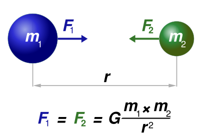 The gravitational constant, denoted G, is an empirical physical constant involved in the calculation of the gravitational attraction between objects with mass. It appears in Newton's law of universal gravitation and in Einstein's theory of general relativity. It is also known as the universal gravitational constant, Newton's constant, and colloquially Big G. It should not be confused with "little g" (g), which is the local gravitational field (equivalent to the local acceleration due to gravity), especially that at the Earth's surface; see Earth's gravity and Standard gravity. According to the law of universal gravitation, the attractive force (F) between two bodies is proportional to the product of their masses (m1 and m2), and inversely proportional to the square of the distance (r) between them: The constant of proportionality, G, is the gravitational constant. The gravitational constant is perhaps the most difficult physical constant to measure. In SI units, the 2006 CODATA-recommended value of the gravitational constant is: Another authoritative estimate is given by the International Astronomical Union (see Standish, 1995). Dimensions, units and magnitudeThe dimensions assigned to the gravitational constant in the equation above — length cubed, divided by mass and by time squared (in SI units, metres cubed per kilogram per second squared) — are those needed to balance the units of measurements in gravitational equations. However, these dimensions have fundamental significance in terms of Planck units: when expressed in SI units, the gravitational constant is dimensionally and numerically equal to the cube of the Planck length divided by the Planck mass and by the square of Planck time. In natural units, of which Planck units are perhaps the best example, G and other physical constants such as c (the speed of light) may be set equal to 1. In many secondary school texts, the dimensions of G are derived from force in order to assist student comprehension: In cgs, G can be written as: In astrophysical use, when distances are measured in parsecs (pc), velocities in kilometers per second (km/s) and masses in solar units ( The gravitational force is extremely weak compared with other fundamental forces. For example, the gravitational force between an electron and proton 1 meter apart is approximately 10 newton, while the electromagnetic force between the same two particles is approximately 10 newton. Both these forces are weak when compared with the forces we are able to experience directly, but the electromagnetic force in this example is some 39 orders of magnitude (i.e. 10) greater than the force of gravity — roughly the same ratio as the mass of the Sun compared to a microgram mass. History of measurementThe gravitational constant appears in Newton's law of universal gravitation, but it was not measured until 1798 — 71 years after Newton's death — by Henry Cavendish (Philosophical Transactions 1798). Cavendish measured G implicitly, using a torsion balance invented by the geologist Rev. John Michell. He used a horizontal torsion beam with lead balls whose inertia (in relation to the torsion constant) he could tell by timing the beam's oscillation. Their faint attraction to other balls placed alongside the beam was detectable by the deflection it caused. However, it is worth mentioning that the aim of Cavendish was not to measure the gravitational constant but rather to measure the mass and density relative to water of the Earth through the precise knowledge of the gravitational interaction. The value that he calculated, in SI units, was 6.754 × 10 m/kg/s In the January 5, 2007 issue of Science (page 74), the report "Atom Interferometer Measurement of the Newtonian Constant of Gravity" (J. B. Fixler, G. T. Foster, J. M. McGuirk, and M. A. Kasevich) describes a new measurement of the gravitational constant. According to the abstract: "Here, we report a value of G = 6.693 × 10 cubic meters per kilogram second squared, with a standard error of the mean of ±0.027 × 10 and a systematic error of ±0.021 × 10 cubic meters per kilogram second squared." The GM productThe quantity GM — the product of the gravitational constant and the mass of a given astronomical body such as the Sun or the Earth — is known as the standard gravitational parameter and is denoted μ. Depending on the body concerned, it may also be called the geocentric or heliocentric gravitational constant, among other names. This quantity gives a convenient simplification of various gravity-related formulas. Also, for many celestial bodies such as the Earth and the Sun, the value of the product GM is known more accurately than each factor independently. Indeed, the limited accuracy available for G often limits the accuracy of scientific determination of such masses in the first place. For Earth, using M⊕ as the symbol for the mass of the Earth, we have Calculations in celestial mechanics can also be carried out using the unit of solar mass rather than the standard SI unit kilogram. In this case we use the Gaussian gravitational constant which is k, where and