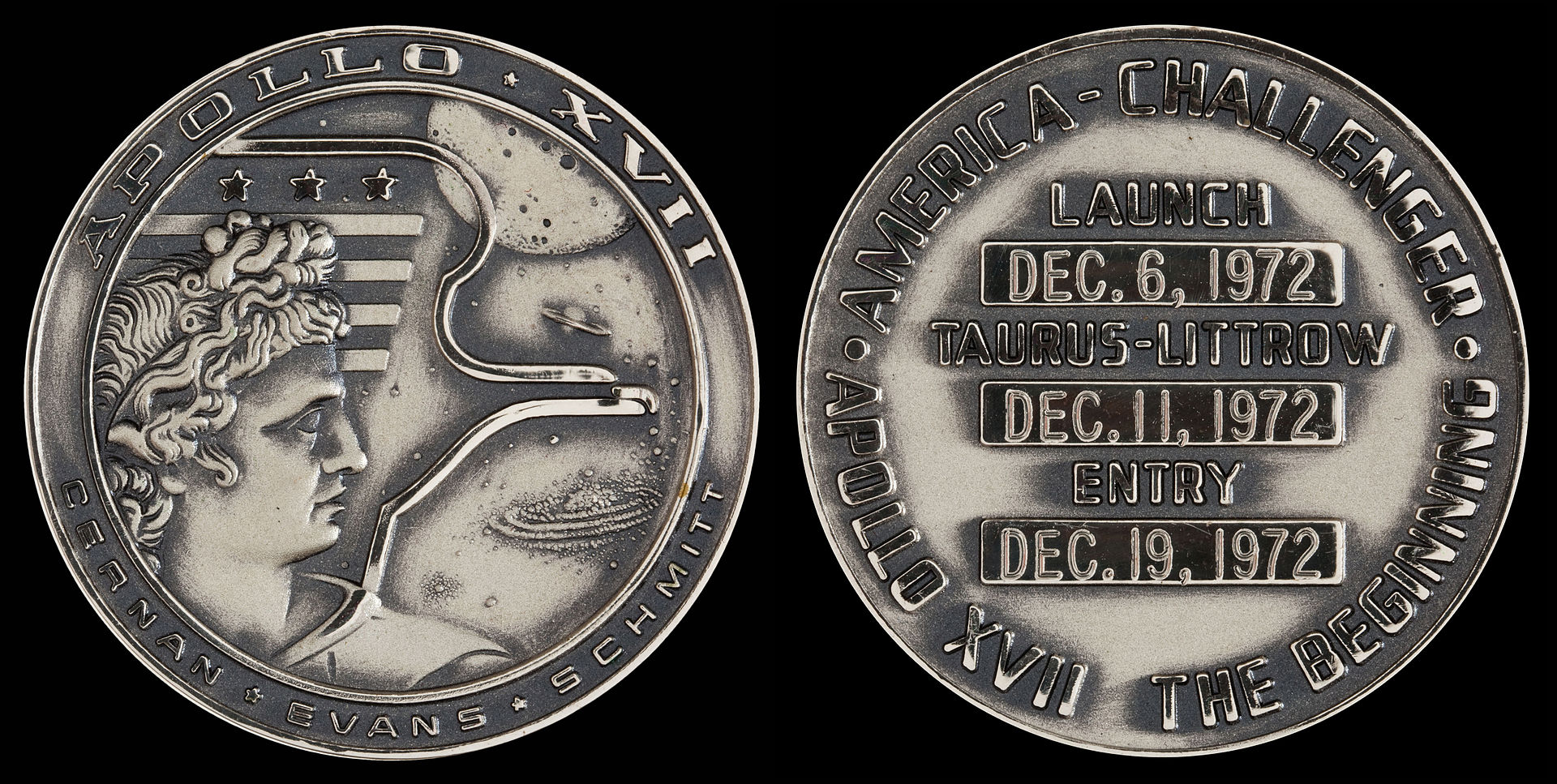 This is the official emblem of the Apollo 17 lunar landing mission which was flown by astronauts Eugene A. Cernan, Ronald E. Evans and Harrison H. Schmitt.