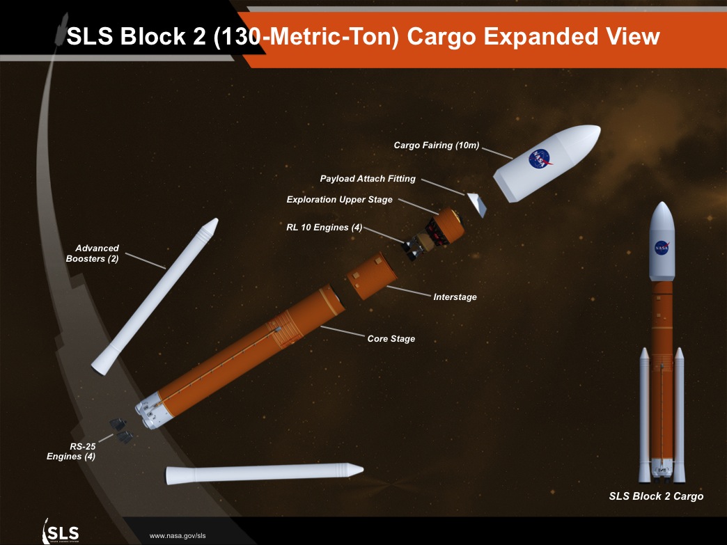 DevelopmentFundingDuring the joint Senate-NASA presentation in September 2011, it was stated that the SLS program had a projected development cost of US$18 billion through 2017, with $10 billion for the SLS rocket, $6 billion for the Orion spacecraft, and $2 billion for upgrades to the launch pad and other facilities at Kennedy Space Center. These costs and schedules were considered optimistic in an independent 2011 cost assessment report by Booz Allen Hamilton for NASA. An internal 2011 NASA document estimated the cost of the program through 2025 to total at least $41 billion for four 209,000 lb (95 t) launches (1 uncrewed, 3 crewed), with the 290,000 lb (130 t) version ready no earlier than 2030. The Human Exploration Framework Team estimated unit costs for Block 0 at $1.6 billion and Block 1 at $1.86 billion in 2010. However, since these estimates were made the Block 0 SLS vehicle was dropped in late 2011, and the design was not completed. In September 2012, an SLS deputy project manager stated that $500 million is a reasonable target average cost per flight for the SLS program. In 2013, the Space Review estimated the cost per launch at $5 billion, depending on the rate of launches. NASA announced in 2013 that the European Space Agency will build the Orion service module. In August 2014, as the SLS program passed its Key Decision Point C review and entered full development, costs from February 2014 until its planned launch in September 2018 were estimated at $7.021 billion. Ground systems modifications and construction would require an additional $1.8 billion over the same time. In October 2018, NASA's Inspector General reported that the Boeing core stage contract had made up 40% of the $11.9 billion spent on the SLS as of August 2018. By 2021, core stages were expected to have cost $8.9 billion, twice the initially planned amount. In December 2018, NASA estimated that yearly budgets for the SLS will range from $2.1 to $2.3 billion between 2019 and 2023. In March 2019, the Trump administration released its Fiscal Year 2020 Budget Request for NASA. This budget did not include any money for the Block 1B and Block 2 variants of SLS. It was therefore uncertain whether these future variants of SLS will be developed, but congressional action restored this funding in the passed budget. Several launches previously planned for the SLS Block 1B are expected to fly on commercial launcher vehicles such as Falcon Heavy, New Glenn, and Vulcan. However, the request for a budget increase of $1.6 billion towards SLS, Orion, and crewed landers along with the launch manifest seem to indicate support of the development of Block 1B, debuting Artemis 3. An uncrewed Block 1B is planned to launch the Lunar Surface Asset in 2028, the first lunar outpost of the Artemis program. Budget For fiscal years 2011 through 2021, the SLS program had expended funding totaling $21.209 billion in nominal dollars. This is equivalent to $23.011 billion in 2021 dollars using the NASA New Start Inflation Indices.
