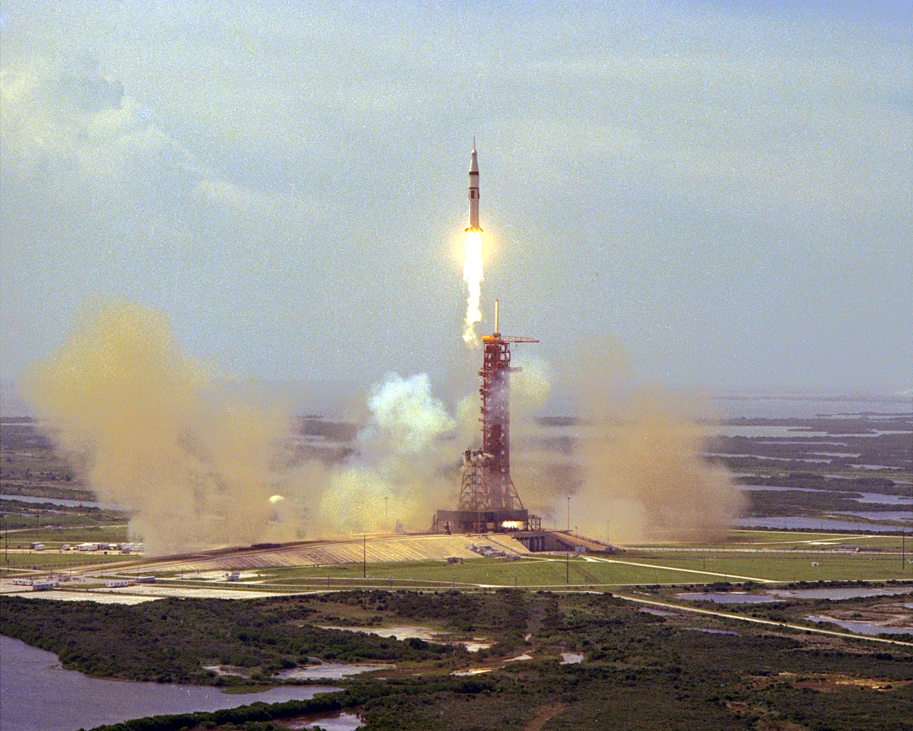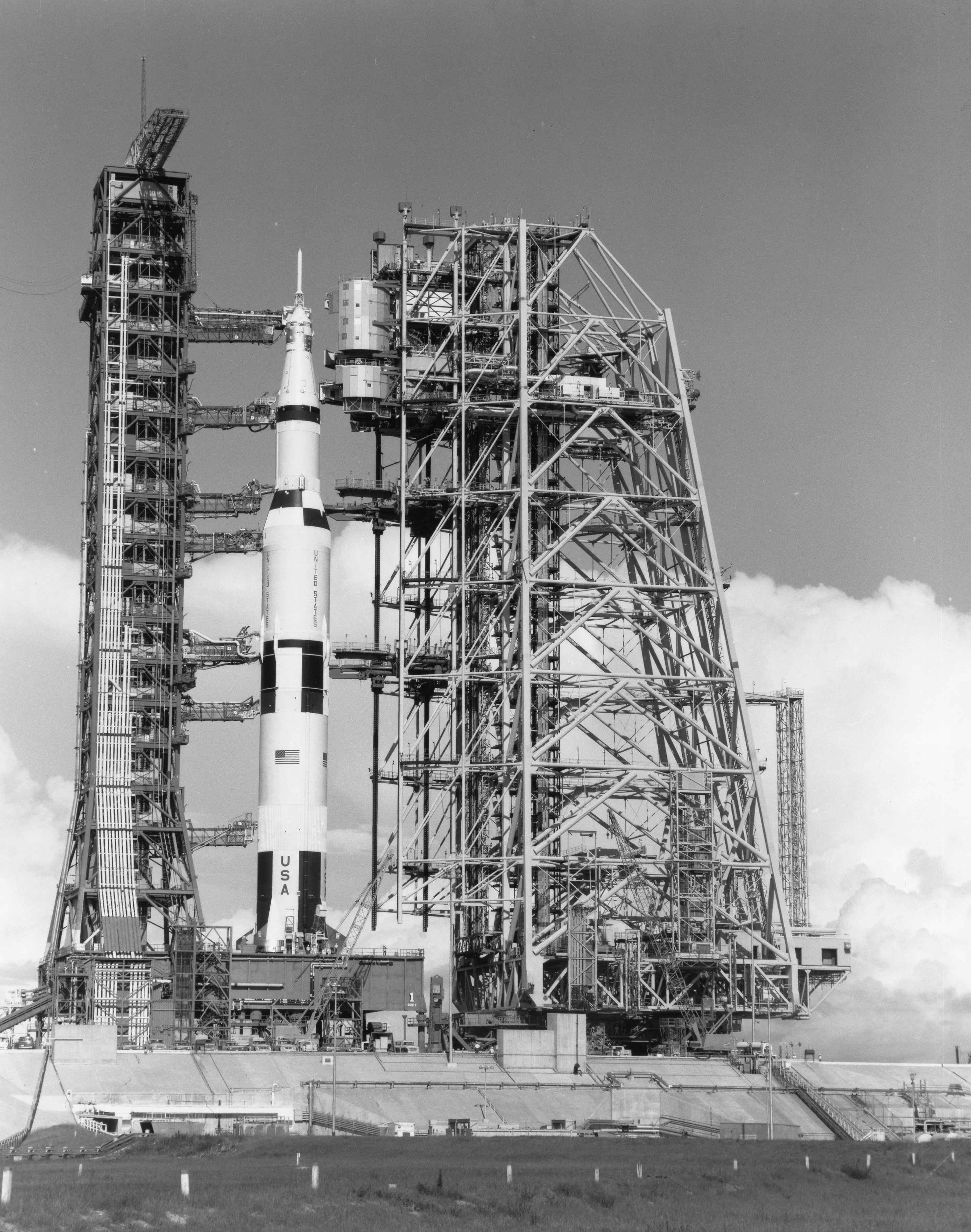 Location: John F. Kennedy Space Center, Titusville, Florida NASA launches from pads 39A and 39B have been supervised from the NASA Launch Control Center (LCC), located 3 miles (4.8 km) from the launch pads. LC-39 is one of several launch sites that share the radar and tracking services of the Eastern Test Range. HistoryEarly historyNorthern Merritt Island was first developed around 1890 when a few wealthy Harvard University graduates purchased 18,000 acres (73 km2) and constructed a three-story mahogany clubhouse, very nearly on the site of Pad 39A. During the 1920s, Peter E. Studebaker Jr., son of the automobile magnate, built a small casino at De Soto Beach eight miles (13 km) north of the Canaveral lighthouse. In 1948, the Navy transferred the former Banana River Naval Air Station, located south of Cape Canaveral, to the Air Force for use in testing captured German V-2 rockets. The site's location on the East Florida coast was ideal for this purpose, in that launches would be over the ocean, away from populated areas. This site became the Joint Long Range Proving Ground in 1949 and was renamed Patrick Air Force Base in 1950 and Patrick Space Force Base in 2020. The Air Force annexed part of Cape Canaveral, to the north, in 1951, forming the Air Force Missile Test Center, the future Cape Canaveral Space Force Station (CCSFS). Missile and rocketry testing and development would take place here through the 1950s. After the creation of NASA in 1958, the CCAFS launch pads were used for NASA's civilian uncrewed and crewed launches, including those of Project Mercury and Project Gemini. Apollo and SkylabIn 1961, President Kennedy proposed to Congress the goal of landing a man on the Moon by the end of the decade. Congressional approval led to the launch of the Apollo program, which required a massive expansion of NASA operations, including an expansion of launch operations from the Cape to adjacent Merritt Island to the north and west. NASA began acquisition of land in 1962, taking title to 131 square miles (340 km2) by outright purchase and negotiating with the state of Florida for an additional 87 square miles (230 km2). On July 1, 1962, the site was named the Launch Operations Center. Initial design The need for a new launch complex was first considered in 1961. At the time, the highest-numbered launch pad at CCAFS was Launch Complex 37. A proposed Launch Complex 38 had been set aside for the future expansion of the Atlas-Centaur program, but ultimately never built. The new complex was thus designated Launch Complex 39. The method of reaching the Moon had not yet been decided. The two leading alternatives were direct ascent, which launched a single huge rocket; and Earth orbit rendezvous, where two or more launches of smaller rockets would place several parts of the lunar departure spacecraft which would be assembled in orbit. The former would require a huge Nova-class launcher and pads, while the latter would require several rockets to be launched in quick succession. Furthermore, the selection of the actual rockets was still ongoing; NASA was proposing the Nova design while their newly-acquired former Army group in Huntsville Alabama had proposed a series of slightly smaller designs known as Saturn. This complicated the design of the launch complex, as it had to encompass two very different possibilities and rockets. Accordingly, early designs from 1961 show two sets of launch pads. The first was a series of three pads for Saturn along Playalinda Beach, with the southernmost near the current Eddy Creek Boat Launch, and the northernmost around Klondike Beach. Far to the south was a similar set of three pads for Nova, the southernmost just south of the Astronaut Beach House and the northern roughly at the location of the current Pad A. The final selection of lunar orbit rendezvous and the Saturn V led to numerous changes. The Nova pads disappeared, and the three Saturn pads were moved southward. The southernmost was now at the current location of Pad A, while the northernmost was located between Patrol Road, the current boundary road for the LC39 site, and Playlandia Beach Road on the north. At the time, the original three were named from north to south: Pad A through Pad C. The pads were evenly spaced 8,700 feet (2,700 m) apart to avoid damage in the event of an explosion on a pad. In March 1963, plans were formalized to build only two of the three pads; the northernmost was reserved for future expansion. The naming then changed to run south-to-north, such that B and C would be built as B and A respectively and the original 39A, if built, would become 39C. Some consideration for C's construction was made: the Crawlerway initially splits off from A toward B running north-northwest, and then bends north toward B a short distance north at Cochran Cove. Continuing straight would have led to C after a similar northward bend. The original construction of the Crawlerway included an interchange between B and the extension northward for C, which remains intact as of 2022, and the traffic-light warning system for the Crawlerway has lights for Pad C. The plans still set aside room for the remaining two pads, now known as D and E. Pad D would have been built due west of Pad C, some distance inland along Patrol Road. Access to D would have branched off westward from the crawlerway at the point where C's crawlerway turned north. Pad E would have continued the line of pads along the coast, north of C near Playalinda Beach, close to the original location of the southernmost pad in the original layout. No diagram of the access to E can be found. Had all of them been built, C, D and E would have formed a triangle. Integration of space vehicle stack Months before a launch, the three stages of the Saturn V launch vehicle and the components of the Apollo spacecraft were brought inside the Vehicle Assembly Building (VAB) and assembled, in one of four bays, into a 363-foot (111 m)-tall space vehicle on one of t