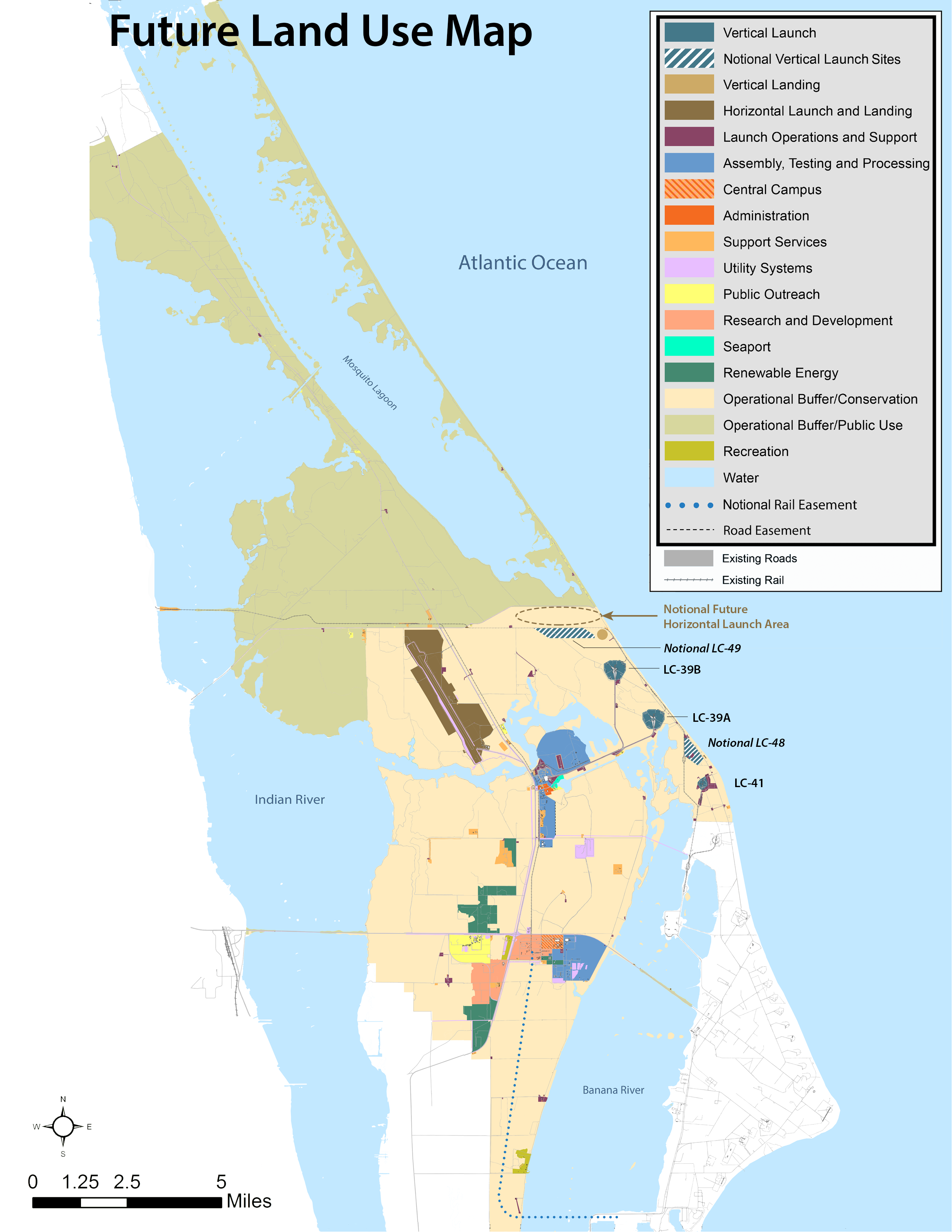 Future developmentPrevious Kennedy Space Center (KSC) Master Plan recommendations—in 1966, 1972, and 1977—noted that an expansion of KSC's vertical launch capacity could occur when the market demand existed. The 2007 Site Evaluation Study recommended an additional vertical launch pad, Launch Complex 49 (LC-49), to be sited north of existing LC-39B. As part of the Environmental Impact Study (EIS) process, this proposed launch complex was consolidated from two pads (designated in the 1963 plans as 39C and 39D) to one that would provide greater separation from LC-39B. The area was expanded to accommodate a wider variety of launch azimuths, helping to protect against potential overflight concerns of LC-39B. This LC-49 launch facility could accommodate medium to large launch vehicles. The 2007 Vertical Launch Site Evaluation Study concluded that a vertical launch pad could also be sited to the south of 39A, and to the north of pad 41, to accommodate small to medium launch vehicles. Designated as Launch Complex 48 (LC-48), this area is best suited to accommodate small to medium class launch vehicles, due to its closer proximity to LC-39A and LC-41. Due to the nature of these activities, required quantity-distance arcs, launch hazard impact limit lines, other safety setbacks, and exposure limits will be specified for safe operations. Details of the proposed launch pads were published in the Kennedy Space Center Master Plan in 2012. The Master Plan also notes a proposed New Vertical Launchpad northwest of LC-39B and a Horizontal Launch Area north of the LC-49 and converting the Shuttle Landing Facility (SLF) and its apron areas into a second Horizontal Launch Area. Space Florida has proposed that Launch Complex 48 be developed for use by Boeing's Phantom Express and that three landing pads be built for reusable booster systems, to provide more landing options for SpaceX's Falcon 9 and Falcon Heavy, Blue Origin's New Glenn, and other potential reusable vehicles. The pads would be located east of the Horizontal Launch Area and north of LC-39B In August 2019, SpaceX submitted an Environmental Assessment for Starship launch system at Kennedy Space Center. This document included plans for the construction of additional structures at LC-39A to support Starship launches, including a dedicated pad, liquid methane tanks, and a Landing Zone. These are separate from the existing structures that support Falcon 9 and Falcon Heavy launches. Gallery