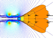 Wikipedia, The Variable Specific Impulse Magnetoplasma Rocket (VASIMR) is an electro-magnetic thruster for spacecraft propulsion. It uses radio waves to ionize a propellant and magnetic fields to accelerate the resulting plasma to generate thrust. The method of heating plasma used in VASIMR was originally developed as a result of research into nuclear fusion. VASIMR is intended to bridge the gap between high-thrust, low-specific impulse propulsion systems and low-thrust, high-specific impulse systems. VASIMR is capable of functioning in either mode. Costa Rican-American scientist and former astronaut Franklin Chang-Diaz created the VASIMR concept and has been working on its development since 1979. Basic designThe Variable Specific Impulse Magnetoplasma Rocket, sometimes referred to as Electro-thermal Plasma Thruster, uses radio waves to ionize and to heat propellant and magnetic fields to accelerate the resulting plasma to generate thrust. This type of engine can be viewed as a variation (differing in the method of plasma acceleration) of the electrodeless plasma thruster. Both types of engine do not have any electrodes. The main advantage of such designs is elimination of problems with electrode erosion. Furthermore, since every part of a VASIMR engine is magnetically shielded and does not come into direct contact with ionized plasma, the potential durability of this engine design is greater than other ion engine designs. The engine design encompasses three parts: 1) turning gas into plasma via helicon RF antennas; 2) energizing plasma via further RF heating in an ICRF booster; 3) using electromagnets to create a magnetic nozzle to convert the plasma's built-up thermal energy into kinetic force. By varying the amount of energy dedicated to RF heating and the amount of propellant delivered for plasma generation VASIMR is capable of either generating low-thrust, high-specific impulse exhaust or relatively high-thrust & low-specific impulse exhaust. It is worth mentioning that, in contrast with usual cyclotron resonance heating processes, in VASIMR ions are immediately ejected through the magnetic nozzle before they have time to achieve thermalized distribution. Based on novel theoretical work in 2004 by Arefiev and Breizman of UT-Austin, virtually all of the energy in the ion cyclotron wave is uniformly transferred to ionized plasma in a single-pass cyclotron absorption process. This allows for ions to leave the magnetic nozzle with a very narrow energy distribution and for significantly simplified & compact magnet arrangement in the engine. PerformanceCurrent VASIMR designs should be capable of producing specific impulses ranging from 3,000 to 30,000 seconds (jet velocities 30 to 300 km/s). The low end of this range is comparable to some existing ion thruster designs. By adjusting the manner of plasma production and plasma heating, a VASIMR can control the specific impulse and thrust. VASIMR is also capable of processing much higher power levels (Megawatts) than existing ion thruster electric propulsion designs. Therefore, it can provide orders of magnitude higher thrust, provided a suitable power source. ApplicationsVASIMR is not suitable to launch payloads from the surface of the Earth due to its low thrust to weight ratio and its need of a vacuum to operate. Instead, it would function as an upper stage for cargo, reducing the fuel requirements for in-space transportation. The engine is expected to perform the following functions at a fraction of the cost of chemical technologies: