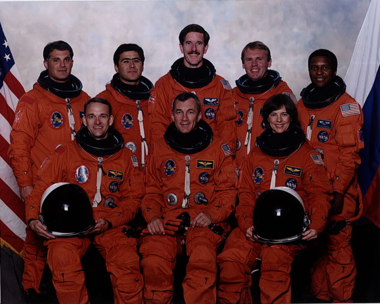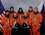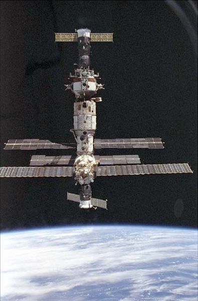 This is a list of spacecraft and crews that visited Mir, a Russian space station. Unmanned visiting spacecraft are excluded (see List of unmanned spaceflights to Mir for details). Mir crew members are listed in bold. "Time Docked" refers to the spacecraft and does not always correspond to the crew. Mir's core module was launched on 19 February 1986. The space station was largely assembled while in orbit and had many short-term visitors (about a week aboard Mir) as well as many long-term crew members (from 6 months up to Valeri Polyakov's 14 month stay at the space station beginning in January 1994, which still holds the record for the longest continuous spaceflight by a single person). Many of the crew who visited Mir used different spacecraft to launch than they did to land; the first such examples were Aleksandr Viktorenko and Muhammed Faris who flew up in Soyuz TM-3 (launched 22 July 1987) and landed a week later in Soyuz TM-2 on 30 July 1987. The largest crew aboard Mir simultaneously (not including the NASA Space Shuttle missions) was 6, which first occurred with the launch of Soyuz TM-7 on 26 November 1988 and lasted for just over three weeks. Mir existed until 23 March 2001. At that day it was deliberately de-orbited and broke apart during atmospheric reentry.