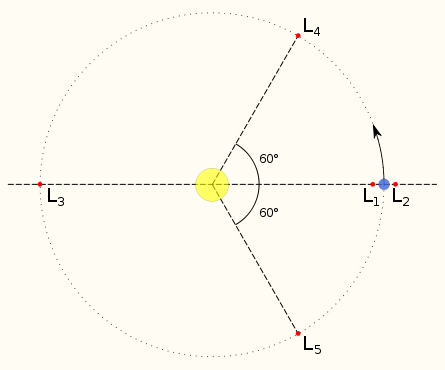 L5L5 is the Lagrangian point located close to the Earth's orbit 60° behind the Earth.