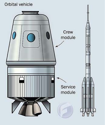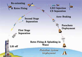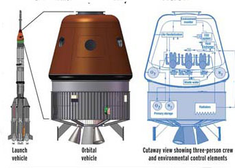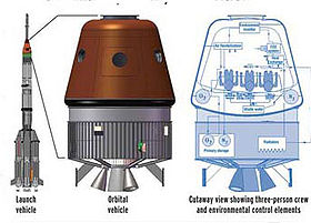 The Indian manned spacecraft temporary named as Orbital Vehicle intend to be the basis of indigenous Indian human spaceflight program. The capsule will be designed to carry three people, and a planned upgraded version will be equipped with a rendezvous and docking capability. In its maiden manned mission, ISRO's largely autonomous 3-ton capsule will orbit the Earth at 248 miles (400 km) in altitude for up to seven days with a two-person crew on board. The crew vehicle would launch atop of ISRO's GSLV Mk II, currently under development. The GSLV Mk II features an indigenously developed cryogenic upper-stage engine. HistoryThe development of the Orbital Vehicle began in 2006. The plan was to design a simple spacecraft of the Mercury-class with an endurance of about a week in space. It was designed to carry two astronauts and to land in water upon re-entry. The design was finalized by March, 2008 and was submitted to the Government of India for funding. The funding for the Indian Human Spaceflight program was sanctioned in February, 2009. The first unmanned flight of the Orbital Vehicle is expected to be in 2013. ISRO based the Orbital Vehicle on the design of the SRE. ISRO had launched and recovered the 550-kg Space Recovery Capsule in January 2007. The full-scale manned OV spaceship was said to be derived from this, although ISRO's published concept showed a more elongated conical shape than the SRE. DescriptionThe OV is fully autonomous three-ton capsuled spacecraft to carry a 3 member crew to orbit and safe return to the Earth after a mission duration of few orbits to two days. The space capsule will have life control and environment control systems. It will be equipped with emergency mission abort and emergency escape that can be done at the first stage and second stage of the rocket. The illustration of the spacecraft showed a main engine and smaller orientation engines arranged in a light package around the base of the capsule, indicating an earth-orbit maneuvering capability was to be included. The nose of the original version of the OV was free for a docking mechanism, but primary entry was evidently through a side hatch secured by explosive bolts. The Orbital Vehicle is slated to be launched on the GSLV Mk II launcher. . About 16 minutes after liftoff from the Satish Dhawan Space Centre (SDSC), Sriharikota, the rocket will inject the OV into an orbit 300-400 km from the Earth. The capsule would return for a splashdown in the Bay of Bengal. The Indian OV spacecraft will be significantly smaller than current Russian Soyuz, Chinese Shenzhou or future US Orion spaceships but larger than the past US Gemini spaceship. While many technological elements to put together a manned flight are already available, ISRO would need to develop many new and novel technologies to ensure a foolproof life-support system, safety, reliability and an escape system for the crew. And in order to perfect the reentry techniques considered crucial for a manned flight, ISRO is planning to carry out three more flights of Space Recovery Capsules (SRE) and few unmanned flights of the OV spaceship. Funding and InfrastructureDevelopment of a fully autonomous orbital vehicle to carry a two-member crew into a low Earth orbit has already began. ISRO sources said the flight is likely to be in 2015. The government has allocated Rs. 50 crore (US$10 million) for pre-project initiatives for 2007 through 2008. A manned mission into space would require about Rs. 12,400 crore (US$3 billion) and a period of seven years. The Planning Commission estimates that a budget of Rs. 5000 crore (US$1 billion) is required for initial work of the manned mission during the eleventh five-year plan (2007-12). The project report prepared by ISRO has been cleared by the space commission. In February, 2009 the Government of India has given the green signal for the Manned Space flight Program due to launch in 2015. "Planning Commission Okays ISRO Manned Space Flight Program". http://www.indianexpress.com/news/plan-panel-okays-isro-manned-space-flight/426945/=. MC Dathan, director of Satish Dhawan Space Centre (SDSC), stated that ISRO will set up a full-fledged training facility in Bangalore for training gaganauts. ISRO is also planning to build a third launch pad at Sriharkota for manned missions with extra facilities like entry into the crew capsule and an escape chute. In spring 2009 the full-scale mock-up of crew capsule of OV was built and delivered to Satish Dhawan Space Centre for training of gaganauts. [1] Russian CooperationA cooperative agreement was sealed in an accord signed on Dec 5, 2008 by ISRO chairman G. Madhavan Nair and Roskosmos Director-General Anatoly Perminov during a state visit to India by Russian President Dimitri Medvedev. Under the accord, an Indian cosmonaut will fly aboard a Russian Soyuz spacecraft in 2013 ahead of ISRO's planned 2015 mission. Roskosmos will also help in crew selection and training and in construction of ISRO's orbiter vehicle. ISRO's human spaceflight program will benefit from assistance provided by the Russian Federal Space Agency. Russia and India have a long history of space-related collaboration. In 1984, Rakesh Sharma became the first Indian in space, flying to the then-Soviet Union's Salyut-7 space station aboard a Soyuz capsule. ScheduleThe ISRO OV is scheduled to be launched with astronauts into space around 2015. As a precursor to indigenous manned spaceflights, an Indian cosmonaut will fly aboard a Russian Soyuz spacecraft in 2013. OperatorsSee also