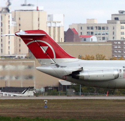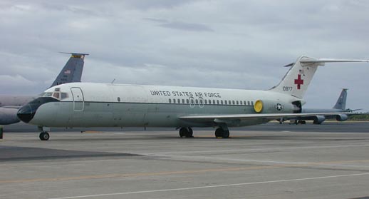 C-9: Several -30 series with side cargo door were purchased by the US armed forces. The C-9A Nightingale medevac configuration was for the U.S Air Force. The C-9B Skytrain II was for the U.S Navy and Marines, used for fleet logistics support moving both personnel and light cargo. The VC-9C is a VIP transport version for the US Air Force, used to transport Cabinet members and other high-ranking officials. Versions of the DC-9 are also used by the Kuwait Air Force and Aeronautica Militare (Italian Air Force). OperatorsA total of 232 DC-9 aircraft (all variants) were in service as of April 2009, including commercial operators Northwest Airlines (63), ABX Air (49), Aserca Airlines (18), USA Jet Airlines (8), 1Time (4), Laser YV (4), Aeropostal-LAV (4), and other operators with fewer aircraft. Northwest Airlines operates a fleet of DC-9 aircraft, most of which are over 30 years old. With severe increases in fuel prices in the summer of 2008, Northwest Airlines finally began retiring its DC-9s, switching to Airbus A319s that are 27% more fuel efficient. Because of the usage of the aging JT8D engines, as of late 2000s DC-9s are considered gas guzzlers when compared to other more recent airliner designs. Studies aimed at improving DC-9 fuel efficiency, by means of retrofitted wingtip extensions of various types, have not succeeded in demonstrating significant benefits. With the existing DC-9 fleet shrinking, modifications do not appear to be likely to occur, especially since the wing design makes retrofitting difficult. Thus, DC-9s are likely to be further replaced in service by new Boeing 737, Airbus A320, Embraer E-Jets aircraft, or the new, emerging Bombardier CSeries airliner. However, it is probable that a modest number of DC-9s will continue to productively fly for many years to come. As the Northwest/Delta merger progresses, Delta has pulled several stored DC-9s back into service. One ex SAS DC-9-21 is operated as a skydiving jump platform at Perris Valley Airport in Perris, California. With the steps on the ventral stairs removed, it is the only airline transport class jet certified to date by the FAA for skydiving operations as of 2008. Accidents and incidentsAs of March 2009, the DC-9 has been involved in 117 incidents, including 101 hull-loss accidents, with 2,135 fatalities. Notable accidents