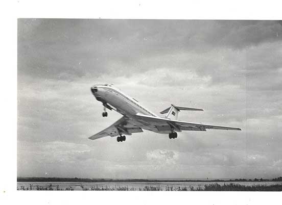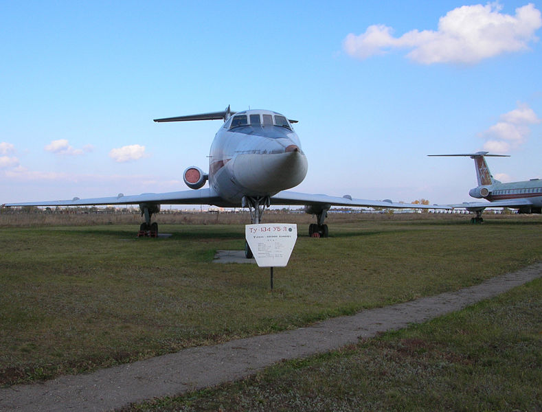 Following the introduction of engines mounted on pylons on the rear fuselage by the French Sud Aviation Caravelle, airliner manufacturers around the world rushed to adopt the new layout. Its advantages included clean wing airflow without disruption by nacelles or pylons and decreased cabin noise. At the same time, placing heavy engines that far back created challenges with the location of the center of gravity in relation to the center of lift, which was at the wings. To make room for the engines, the tailplanes had to be relocated to the tail fin, which had to be stronger and therefore heavier, further compounding the tail-heavy arrangement. During a 1960 visit to France, Soviet leader Nikita Khrushchev was so impressed by the quiet cabin of the Caravelle, that on 1 August 1960 the Tupolev OKB received an official directive to create the Tu-124A with a similar engine arrangement. In 1961, the Soviet state airline, Aeroflot, updated its requirement specifications to include greater payload and passenger capacity. The first Tu-124A prototype, CCCP-45075, first flew on 29 July 1963. Then, on 22 October 1963, the British BAC One-Eleven, which had a similar layout, crashed with the loss of all crew. The aircraft had stalled shortly after takeoff and entered pitch-up: The high-mounted tailplane became trapped in the turbulent wake produced by the wings (see deep stall), which prevented recovery from the stall. Tupolev took notice and the tailplane on Tu-124A was enlarged by 30% for greater control authority. Since Aeroflot's requirements dictated a larger aircraft than initially planned, the Soloviev design bureau developed the more powerful D-30 low-bypass turbofan engines. On 20 November 1963, the new airliner was officially designated Tu-134. Design curiosities of the Tu-134 included a sharp wing sweepback of 35 degrees, compared to 25-28 degrees in its Western analogues. The engines on early production Tu-134s lacked thrust reversers, which made the aircraft one of the few airliners to use a brake parachute for landing. The majority of onboard electronics operated on direct current. The lineage of early Soviet airliners could be traced directly to the Tupolev Tu-16 strategic bomber, and the Tu-134 carried over the glass nose for the navigator and the landing gear fitted with low-pressure tires to permit operation from unpaved airfields. In 1968, Tupolev began work on an improved Tu-134 variant. The fuselage received a 2.1 m (6 ft 10 in) plug for greater passenger capacity and an auxiliary power unit in the tail. The upgraded D-30 engines now featured thrust reversers, replacing the cumbersome parachute. The first Tu-134A, converted from a production Tu-134, flew on 22 April 1969. The first airline flight was on 9 November 1970. Operational historyIn September 1967, the Tu-134 made its first scheduled flight from Moscow to Adler. The Tu-134 was the first Soviet airliner to receive international certification from the International Civil Aviation Organization, which permitted it to be used on international routes. The type is still in widespread use in Russia and other former Soviet countries, but high fuel and maintenance costs limit the number used today. 69 Tu-134 have been destroyed in accidents and wars, 35 of these were non-fatal incidents, and in one of the remaining 34 fatal incidents none inside the plane died. The Tu-134 has also found a new life as a business jet with many having an expensive business interior. With the introduction of new ICAO noise regulations, Tu-134s have been effectively banned from much of European airspace due to loud D-30 engines dating back to the 1960s. The largest fleet of Tu-134 still exists in Russia (146 of about 230 planes of this model). In March 2007 the Russian Minister of transportation Igor Levitin claimed that Tu-134s (as well as Tu-154s) are old and obsolete and should be replaced by Sukhoi Superjet 100 or its foreign analogues within five years. Variants