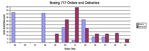 Sources: 717 Technical, 717 Airport planning report SalesOrdersDeliveriesSee alsoRelated development Comparable aircraft