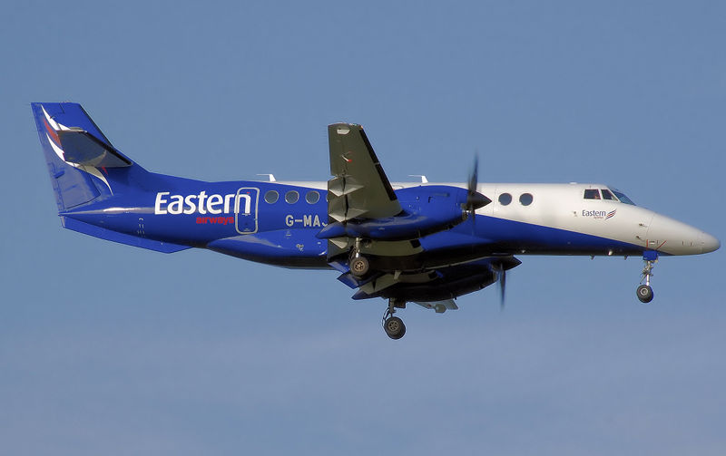 The Jetstream 41 is a turboprop-powered feederliner and regional airliner, designed by British Aerospace as a "stretched" version of the popular Handley Page Jetstream. Intended to compete directly with 30-seat aircraft like the Embraer Brasilia, Dornier 328 and Saab 340, the new design eventually accommodated 29 passengers in a two-by-one arrangement like the Jetstream 31. Eastern Airways is the biggest operator of Jetstream 41s in the world, with 23 in the fleet. Design and developmentThe Jetstream 41's stretch added 16 ft (4.88 m) to the fuselage, consisting of an 8 foot (2.5 m) plug forward of the wing and a 7 ft 9 in (2.36 m) plug to the rear; the fuselage design was all new and did not contain any parts of the old fuselage. The new design demanded a wing with increased span, which also included reworked ailerons and flaps. The wing was also mounted below the fuselage so that it did not carry through the cabin aisle, which also led to larger wing root fairings that increased baggage capacity. The latest version of the Garrett TPE331 engines, the -14, now owned by Honeywell, delivered 1,500 shp (1,120 kW) and later 1,650 shp (1,232 KW) and were mounted in new nacelles with increased ground clearance. The flightdeck was improved with a modern EFIS setup, and a new windscreen arrangement. The J41 was the first turbo-prop certified to both JAR25 and FAR25 standards. Operational serviceThe J41 flew for the first time on 25 September 1991 and was certified on 23 November 1992. In January 1996, the J41 became part of the Aero International (Regional) (AI(R)), a marketing consortium consisting of ATR, Aérospatiale (of France), Alenia (of Italy), and British Aerospace. Sales initially were fairly strong, but in May 1997 BAe announced that it was terminating J41 production, with 100 aircraft delivered. OperatorsIn July 2007, a total of 53 Jetstream 41 aircraft remain in airline service with