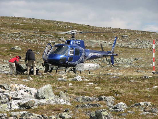AS350 B2 operated by Heliflite picking up hikers in Enontekiö, Finland. |