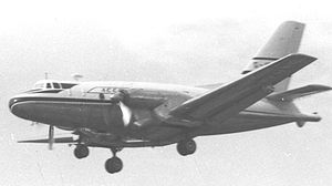 The Aviation Traders ATL-90 Accountant was a 1950s British twin-engined 28-passenger turboprop airliner built at Southend Airport England by Aviation Traders, a member of the airline and aircraft engineering group controlled by Freddie Laker. HistoryThe ATL-90 Accountant was a turboprop airliner designed as a replacement for the Douglas DC-3. It was powered by two Rolls-Royce Dart turboprops and first flew from Southend on the 9 July 1957. The only Accountant, initially flown using the identity G-41-1, but quickly registered G-ATEL, was displayed at the Farnborough Airshow in September 1957 but did not attract much interest. The aircraft last flew on the 10 January 1958 and development was abandoned. The aircraft was scrapped in February 1960. Specifications (Accountant I)General characteristics